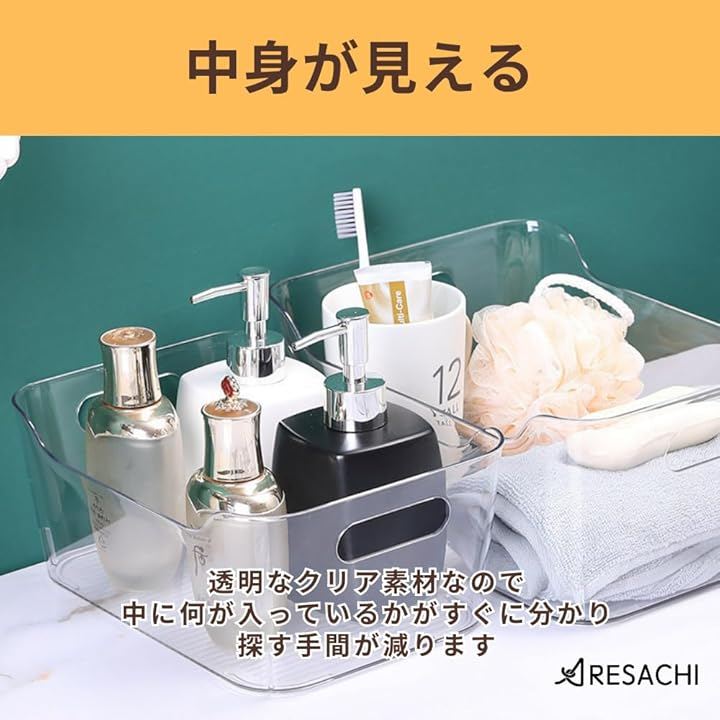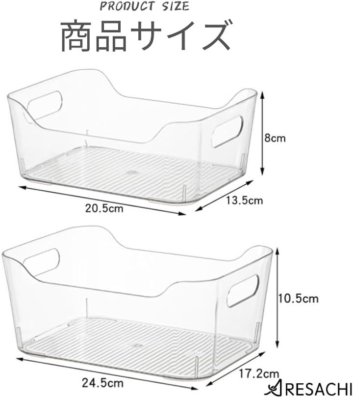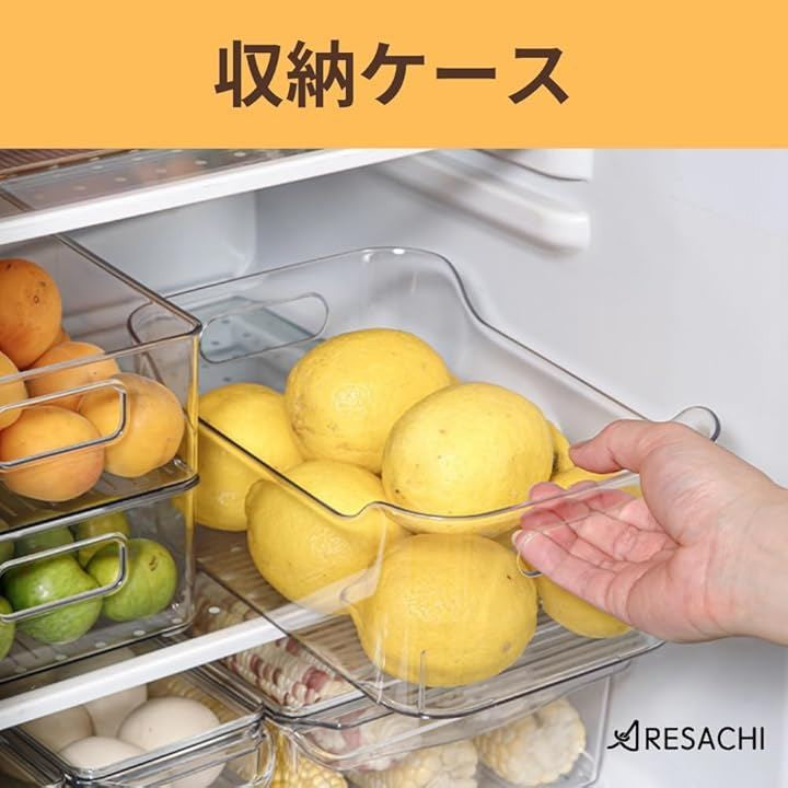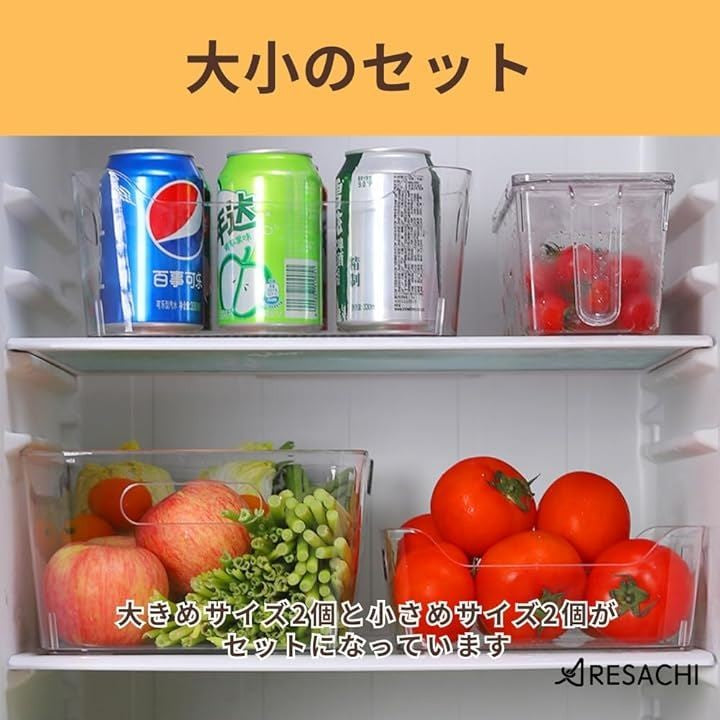冷蔵庫 収納 ケース トレー クリア 透明 整理 小物入れ 持ち手付き 大2個 小2個