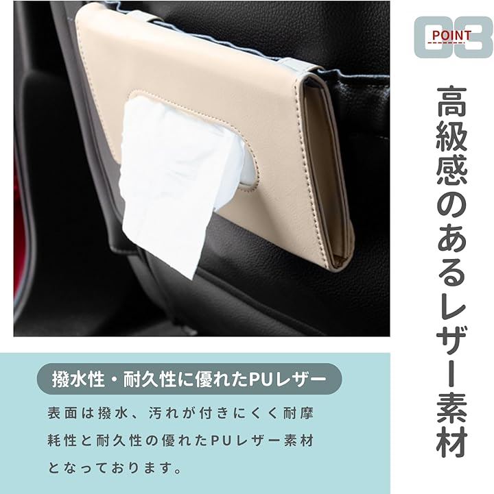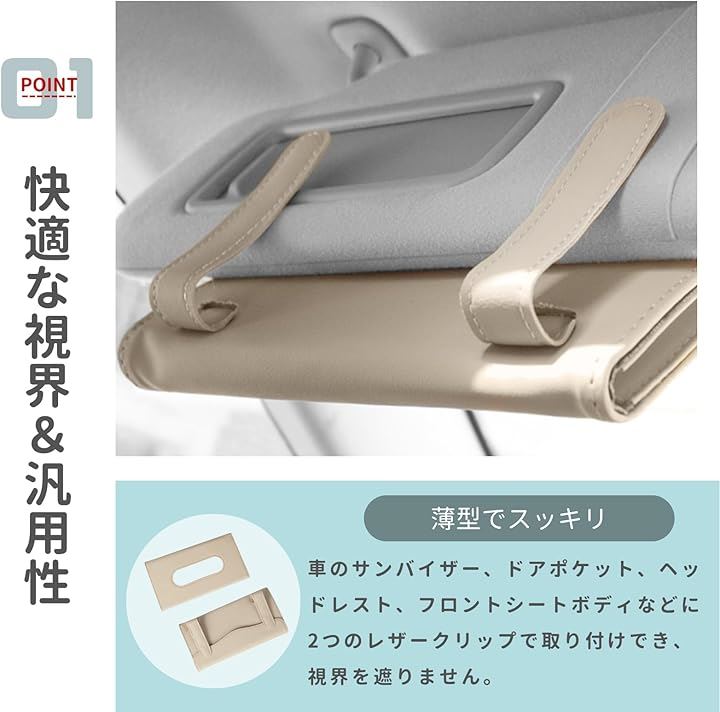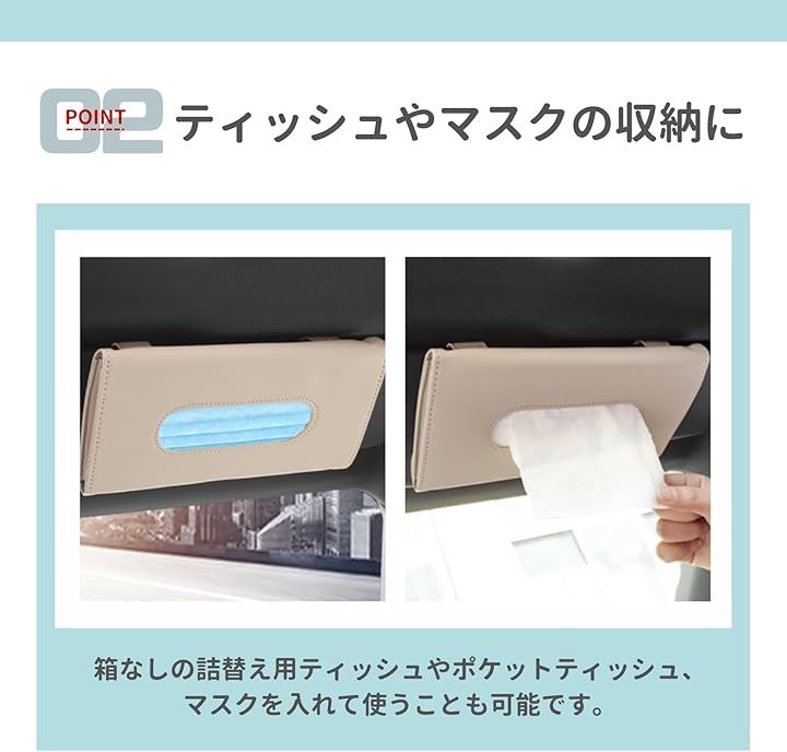 ティッシュケース ティッシュカバー サンバイザー 車 天井 収納 薄型 レザー