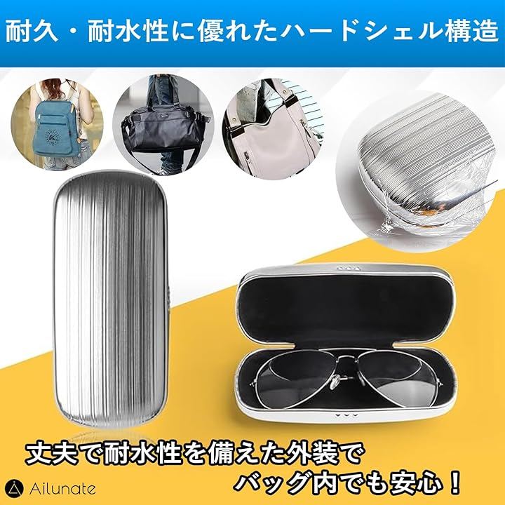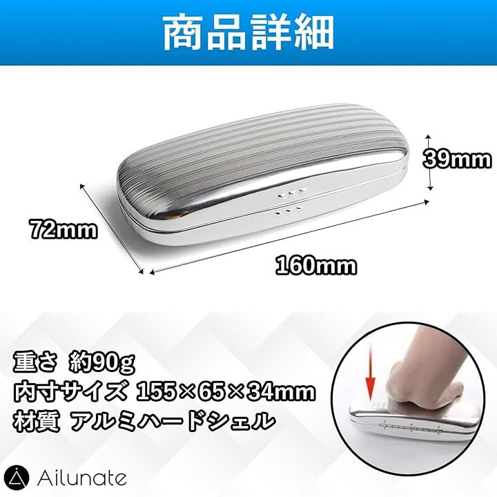 メガネケース ハード 眼鏡ケース アルミ 大きめ スリム 薄型 コンパクト メンズ レディース ストライプ状デザイン