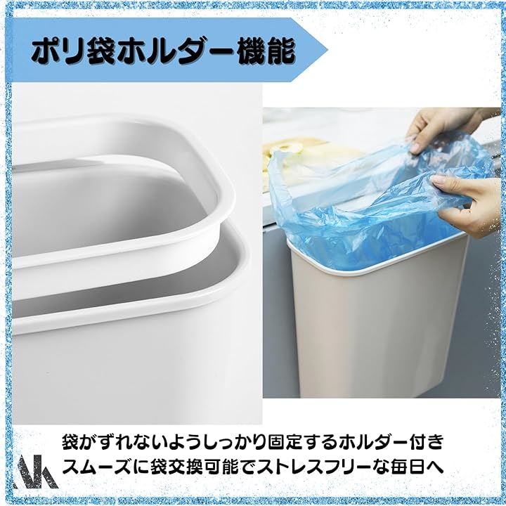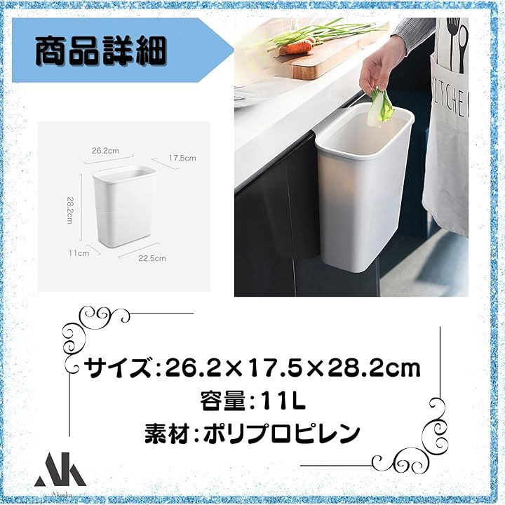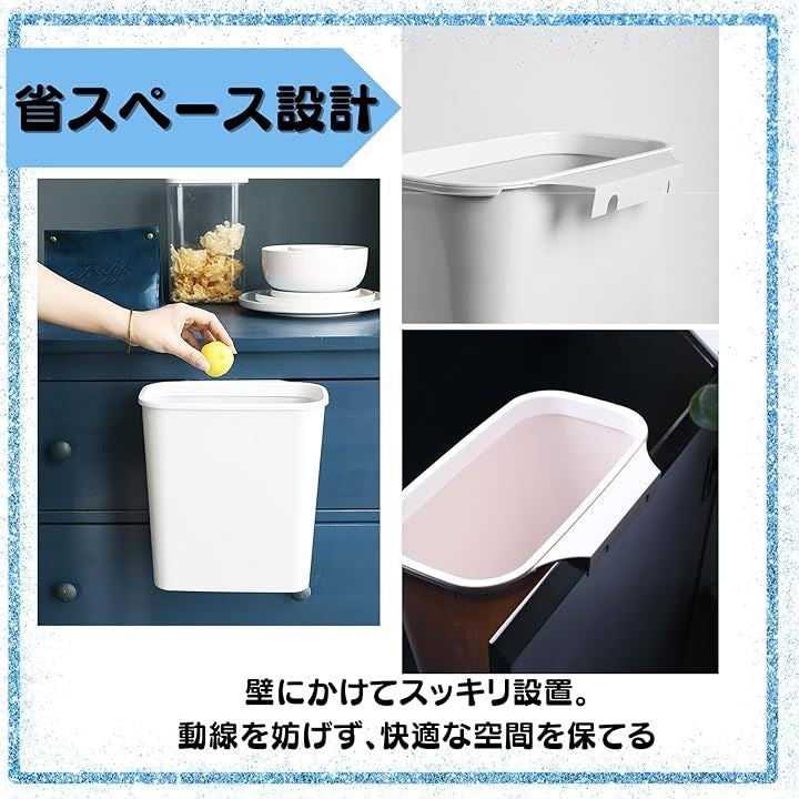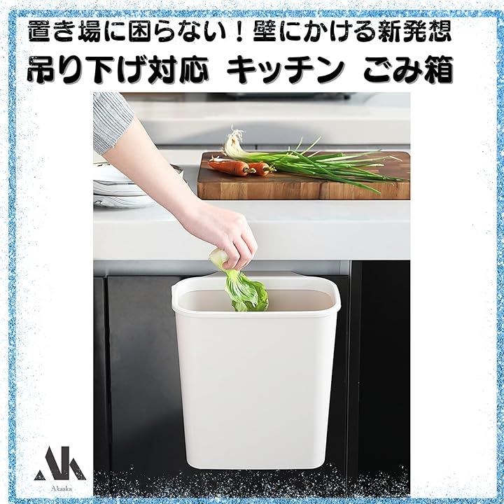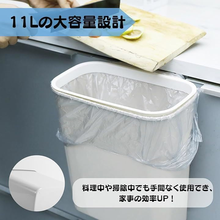 キッチン ごみ箱 フック 壁掛け 吊り下げ対応 プラスチック製 省スペース フタなし 11L