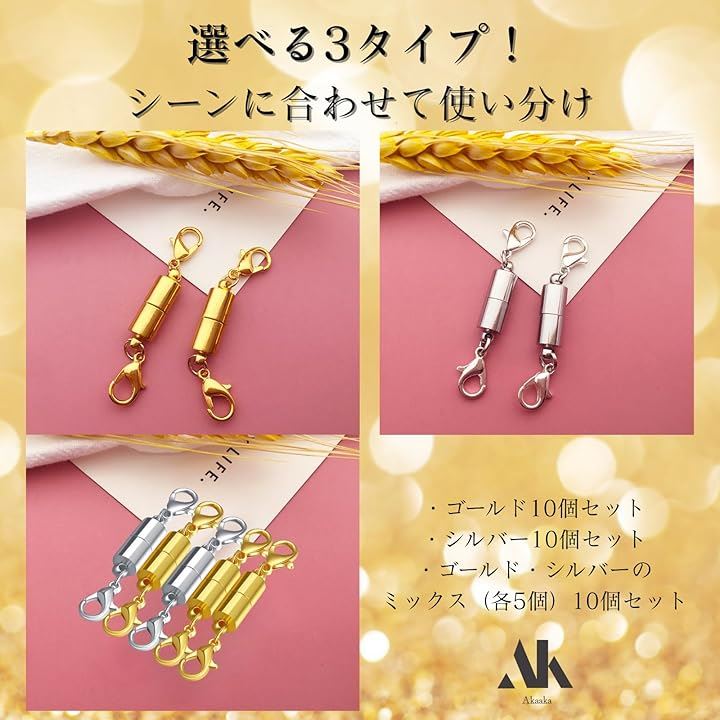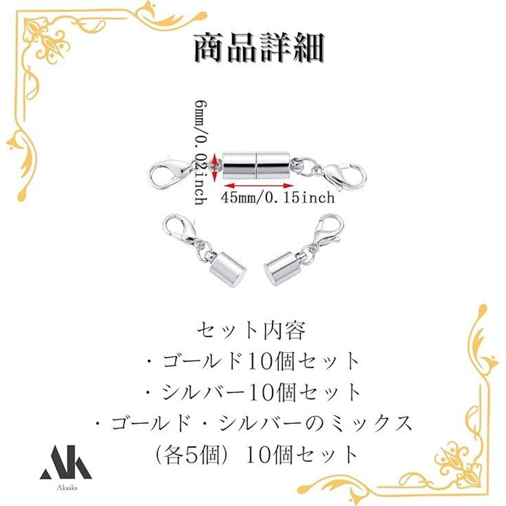 マグネットクラスプ ネックレス留め具 円柱型 ロブスター金具 10個セット DIY用 簡単装着