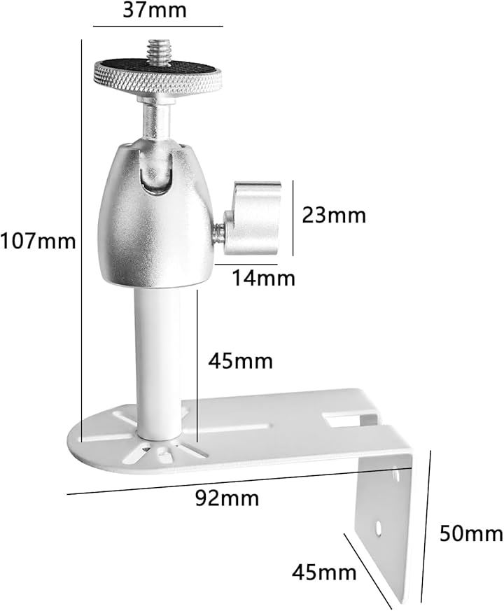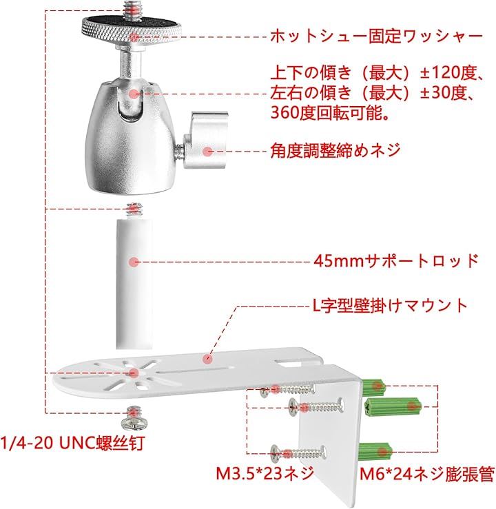 L字型壁掛けマウント 1/4インチネジ穴付きプロジェクターおよびカメラに対応 耐荷重5kg 360°角度調整可能