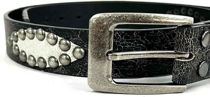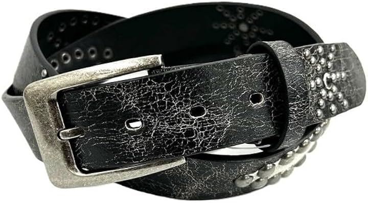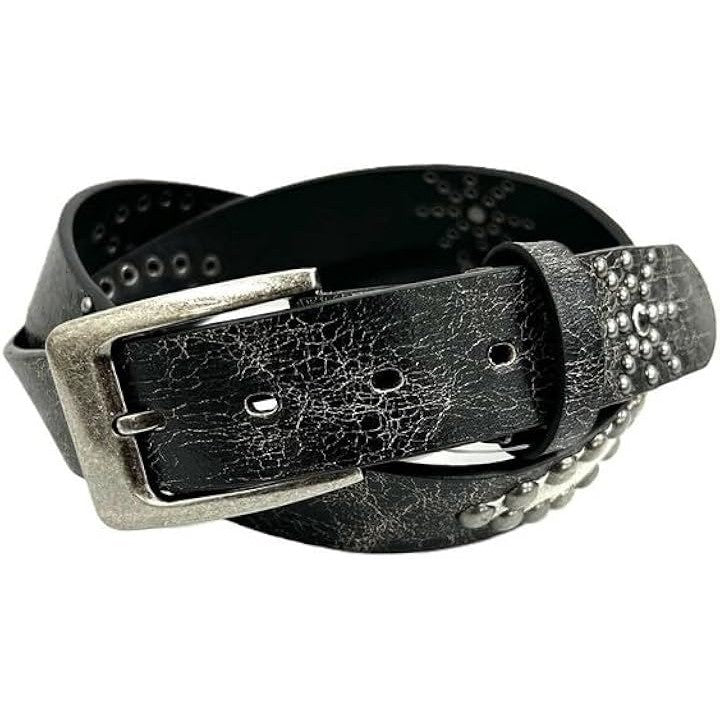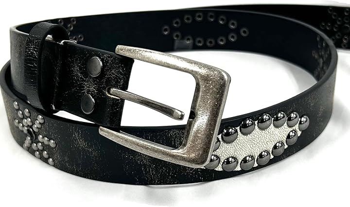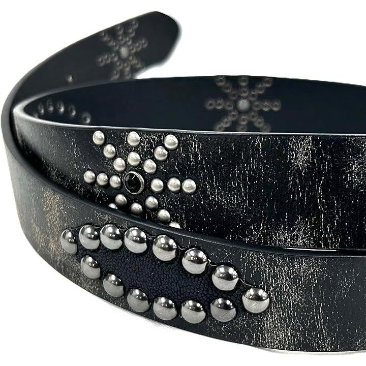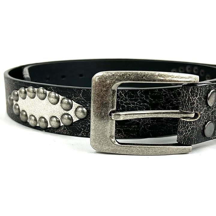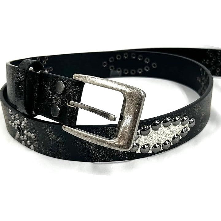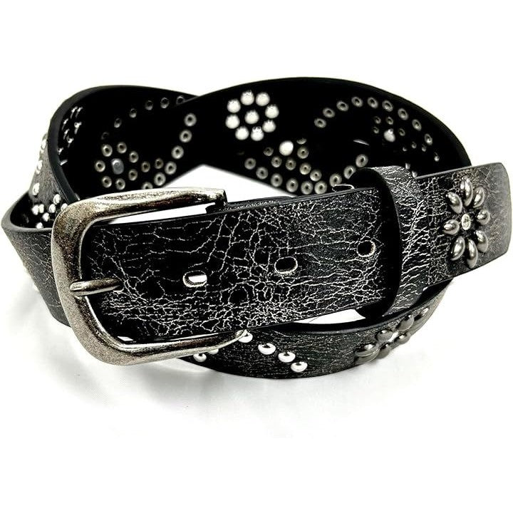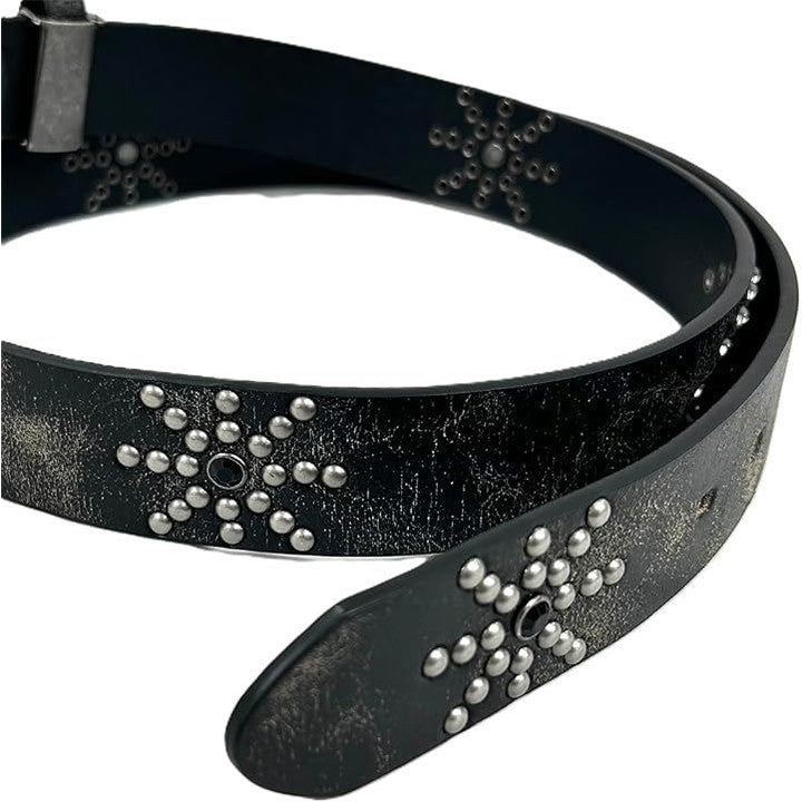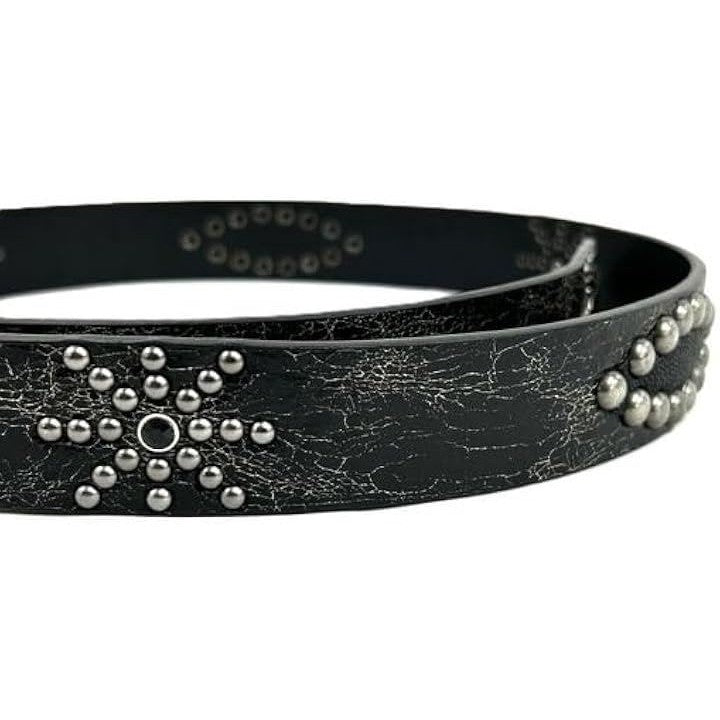 35mm フラワースタッズ カシメ クラック加工 レザーベルト