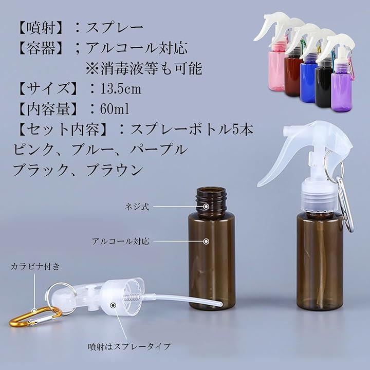 霧吹き スプレーボトル ミニ 詰め替え アルコール対応 アトマイザー 携帯 持ち運び 60ml