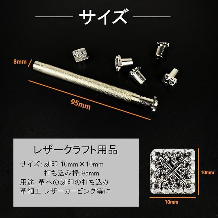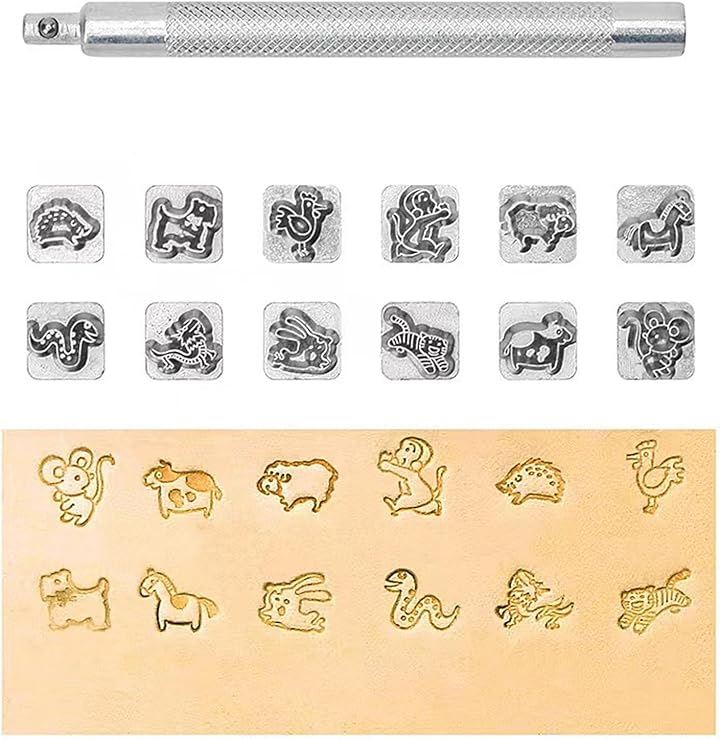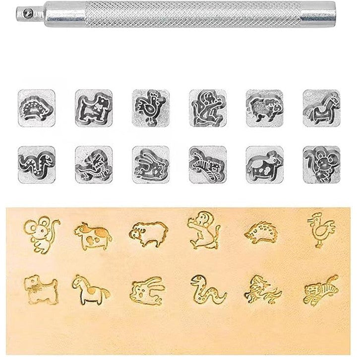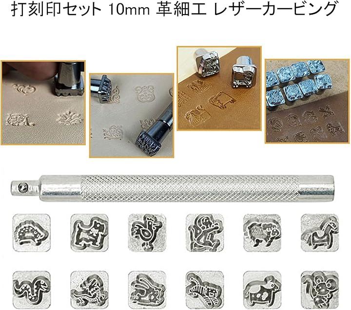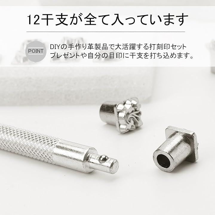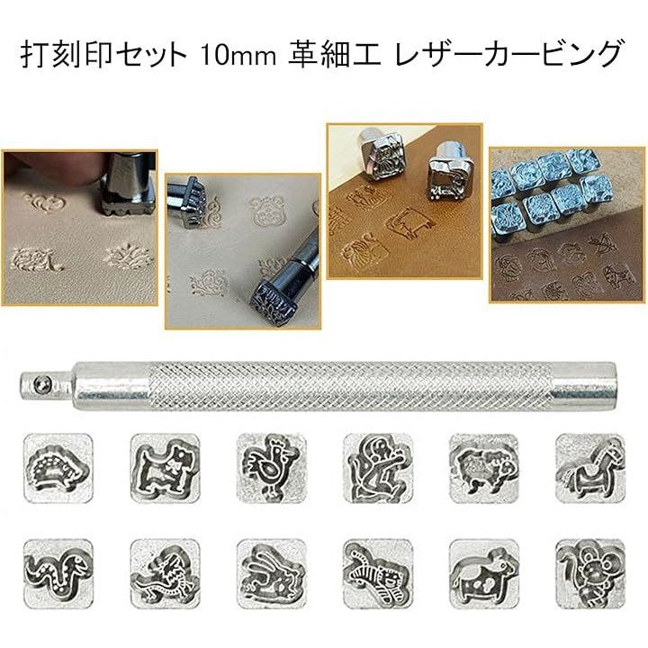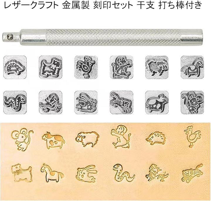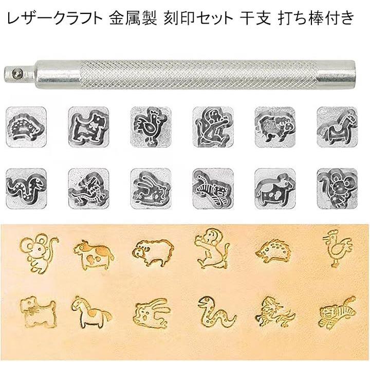 レザークラフト 金属製 刻印セット 干支 打ち棒付き 10mm 革細工 レザーカービング