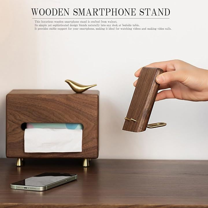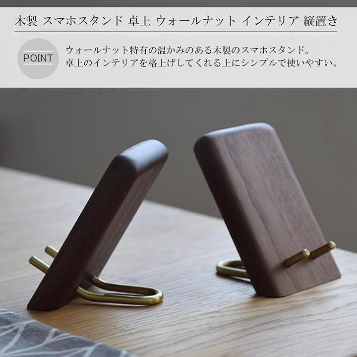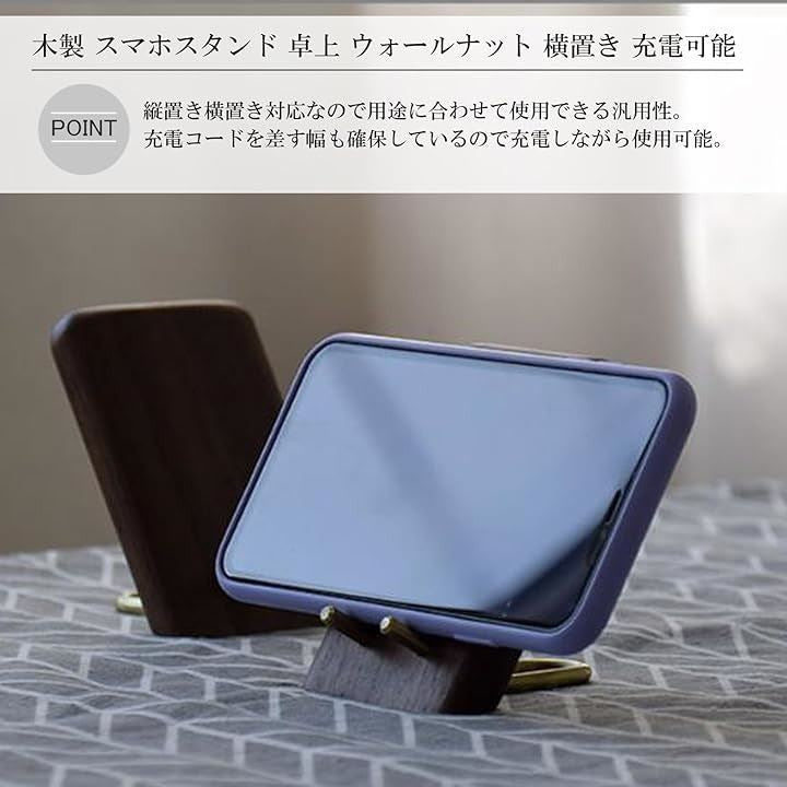 木製 スマホスタンド 卓上 ウォールナット インテリア おしゃれ 縦置き 横置き 充電対応