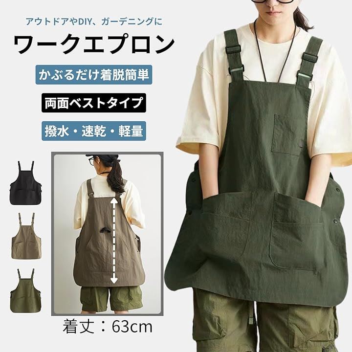 アウトドア エプロン ワークエプロン ショート丈 両面 キャンプ 作業 DIY ガーデニング 撥水 速乾 軽量 A
