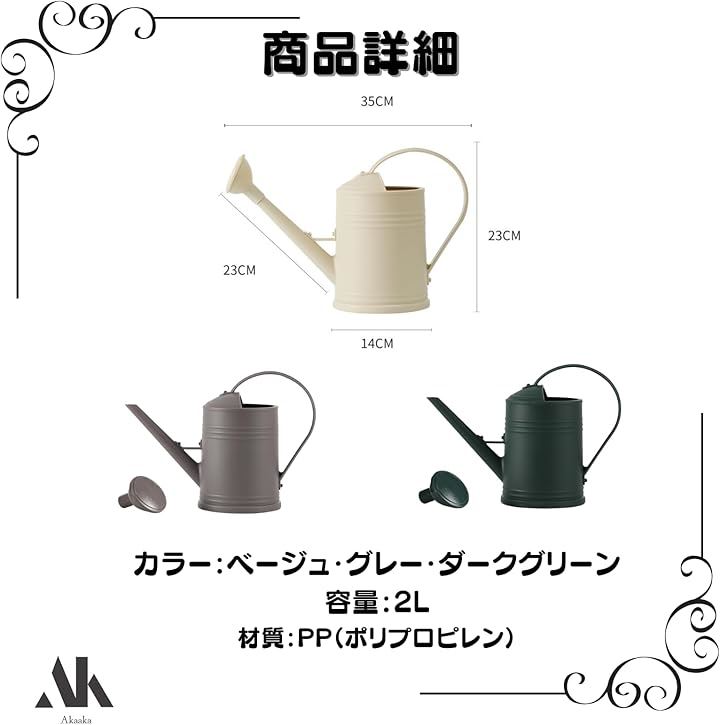 じょうろ おしゃれ 小型 屋外 散水 ガーデニング 園芸 水やり 北欧風2L