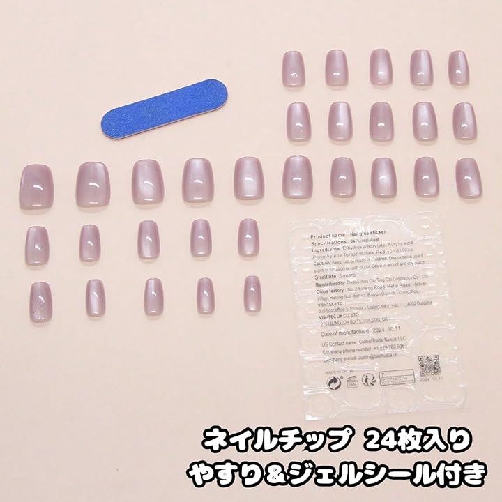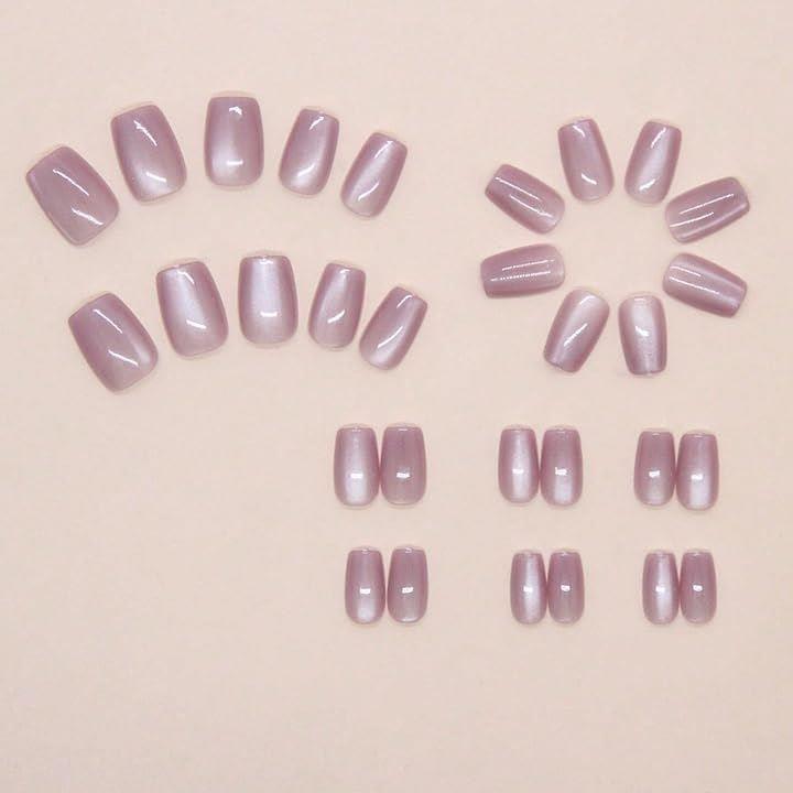 ネイルチップ 紫 ショート つけ爪 ギャル 韓国 かわいい 地雷系 手作りパープル シンプル バレリーナ