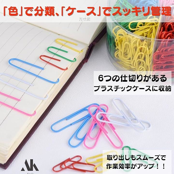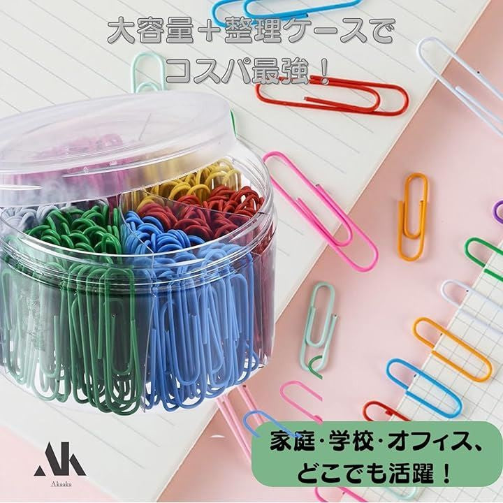 カラークリップ ゼムクリップ 大容量 ケース入り 文書分類 事務用品 ペーパークリップ ファイル整理用 オフィス 学校 家庭用 多色セット