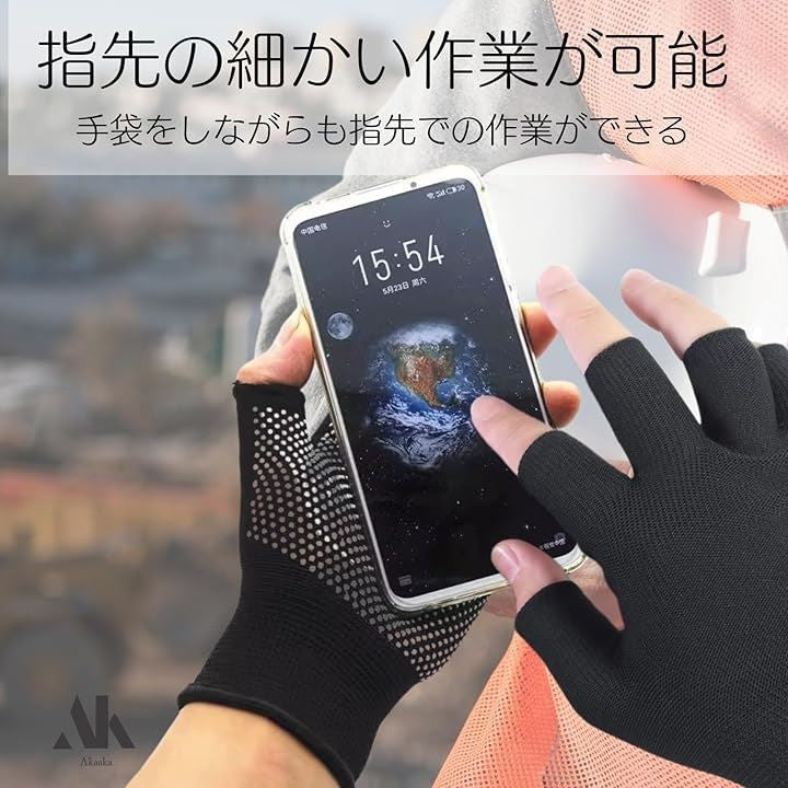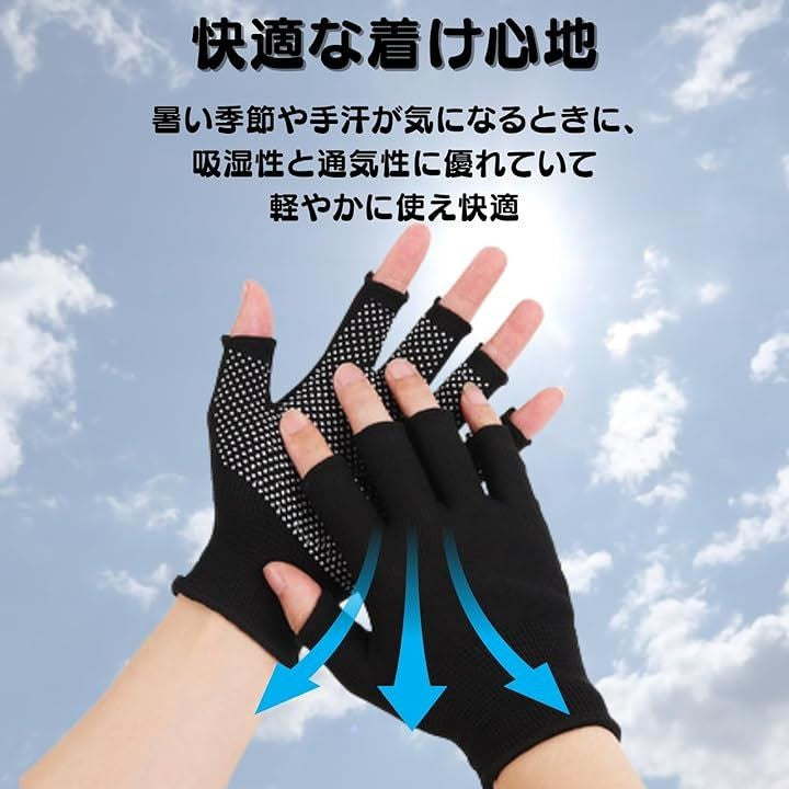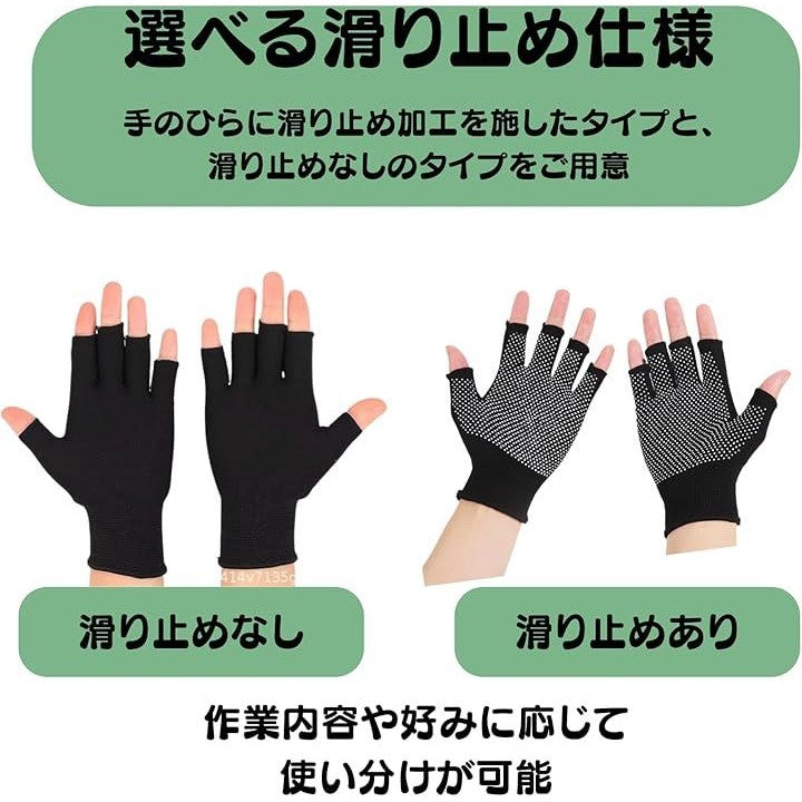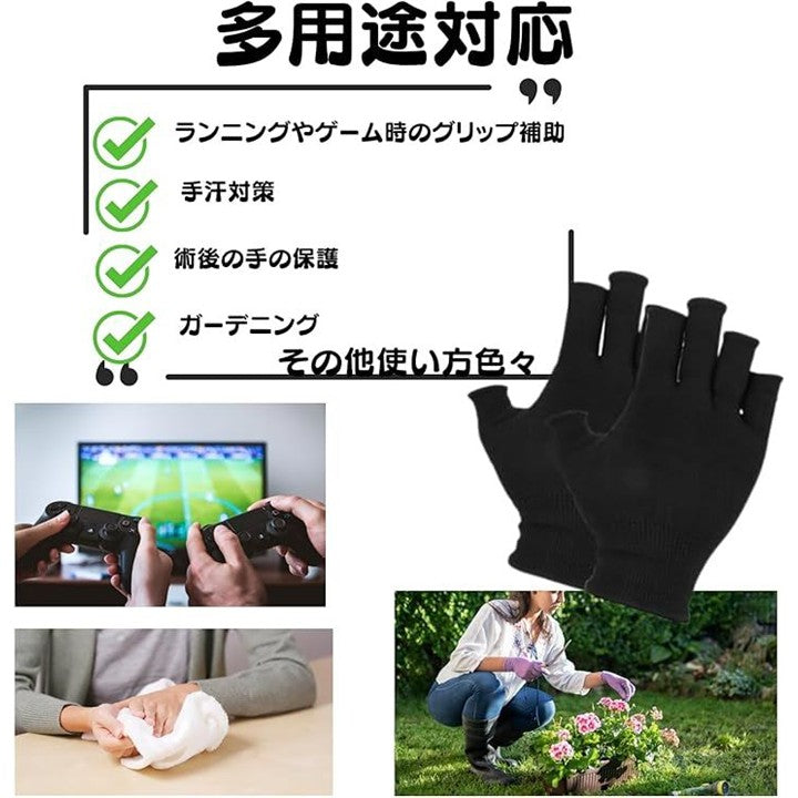指なし手袋 軍手 黒 薄手 作業用 ガーデニング 指だし手袋 指空き 防寒