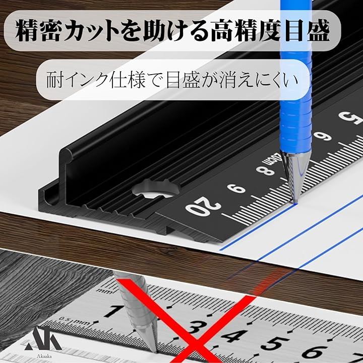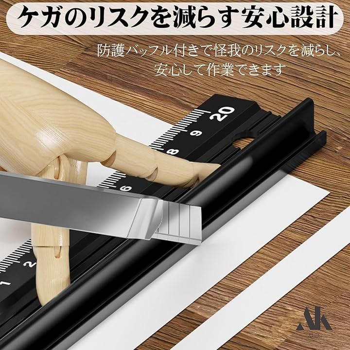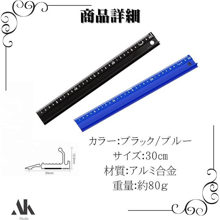 アルミ定規 滑り止め付き カッター対応 持ち手付き 精密作業用 30cm