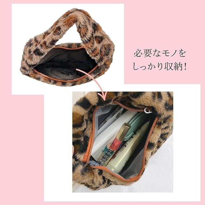 ヒョウ柄 ミニバッグ レディース 小さめ 手提げバッグ フェイクファー ふわふわ