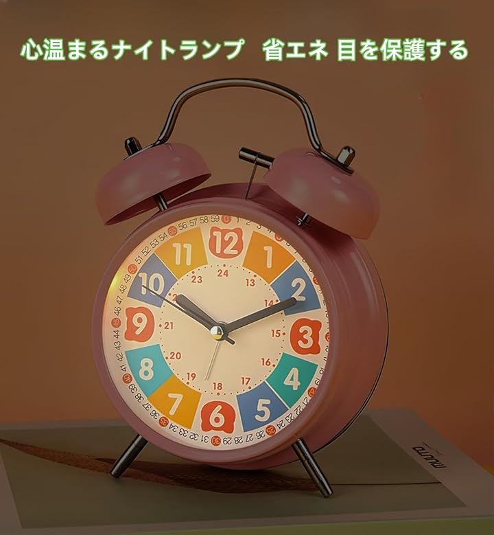 アナログ 大音量 置き時計 おしゃれ 振動 アラーム 目覚まし時計 うるさい 爆音 ベル音 ツインベル 電池別売 学習 静音連続秒針 補助数字 24時間表示 夜灯付き