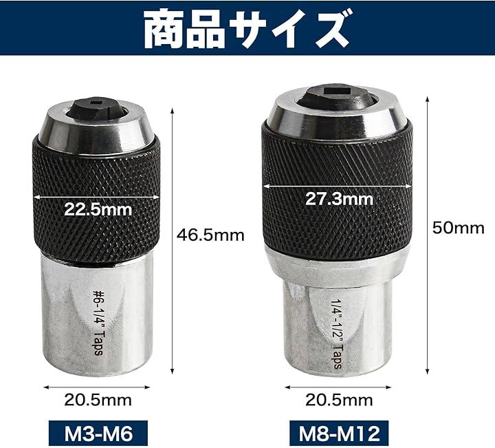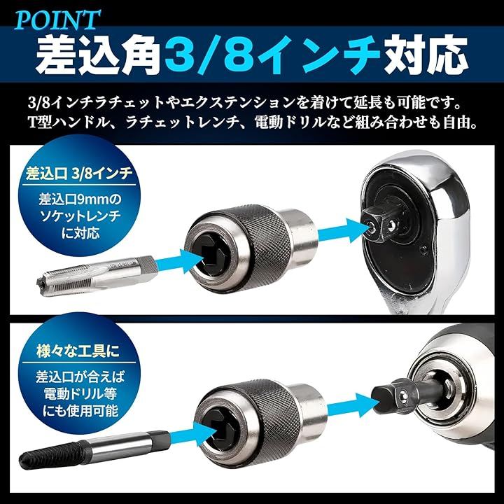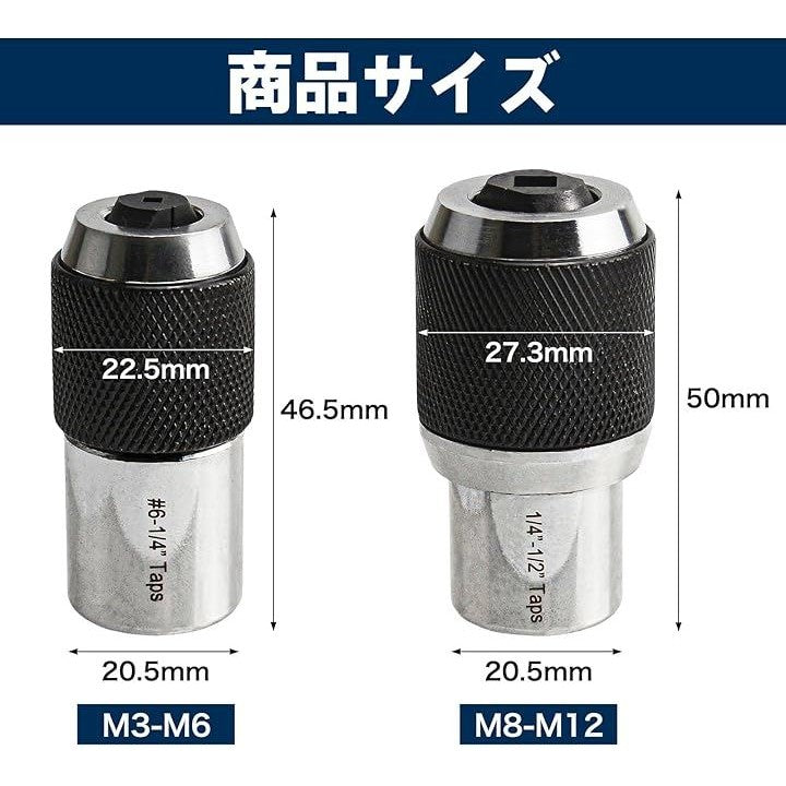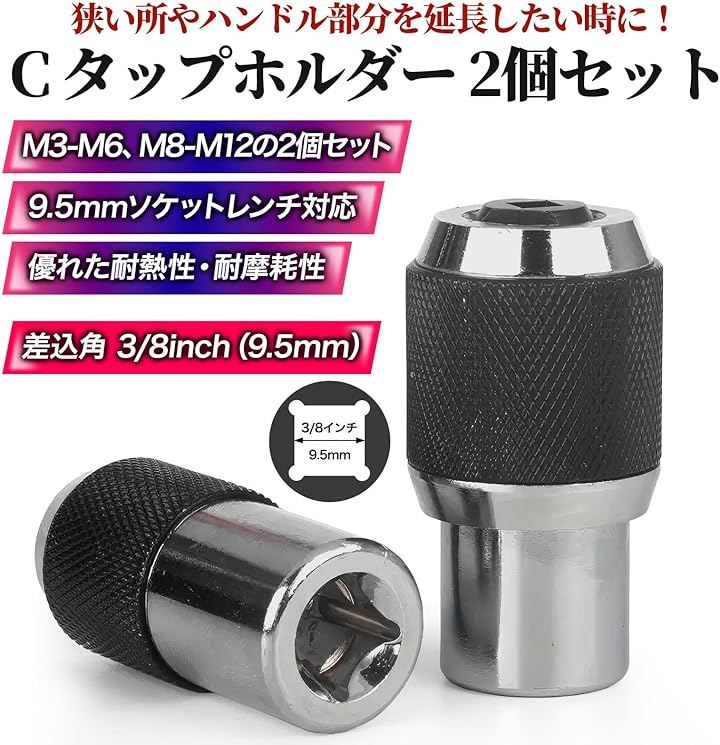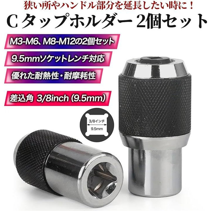 C タップホルダー 2個セット M3-M6 M8-M12 3/8インチ タップレンチ タップハンドル タップソケット タップアダプター ラチェット