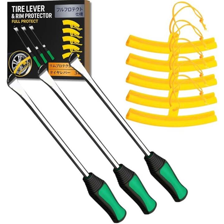 タイヤレバー リムプロテクター セット 自動車 バイク 自転車 タイヤ交換 工具 キズ防止 ホイール保護 グリップ 修理 整備 リペア ステンレス