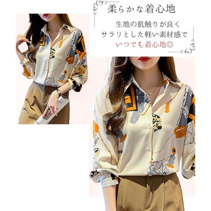 肌触り良好 柄シャツ レディース 長袖 着心地が良い エレガント ブラウス おしゃれ ストライプ 韓国 襟付き トップス きれいめ かっこいい 派手な服