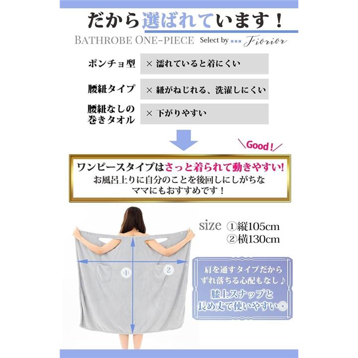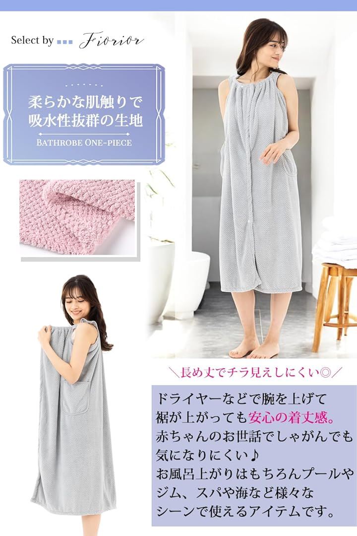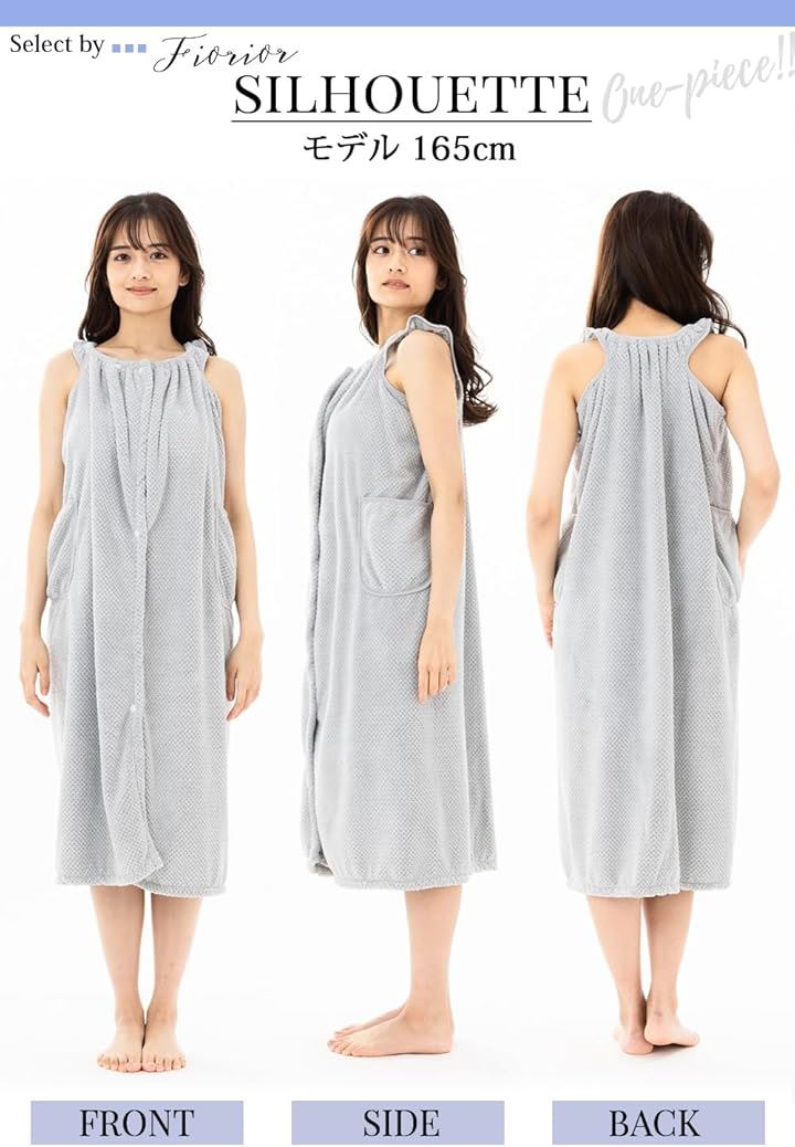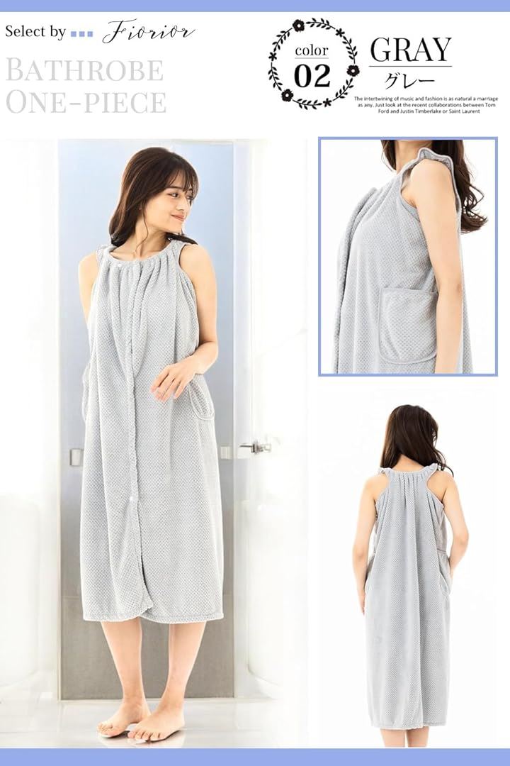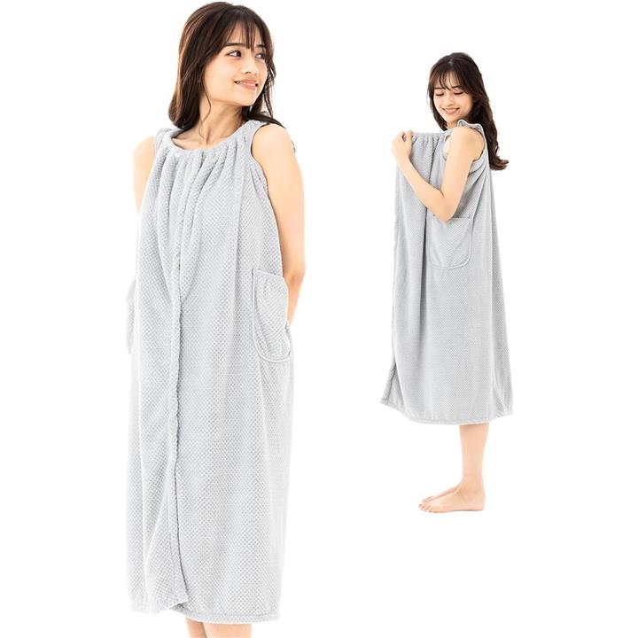 ふわふわの肌触り バスローブ レディース 着るタオル ラップタオル 大人用 マイクロファイバー ワンオペ 速乾 着るバスタオル タオル地 クイックドライ グレー