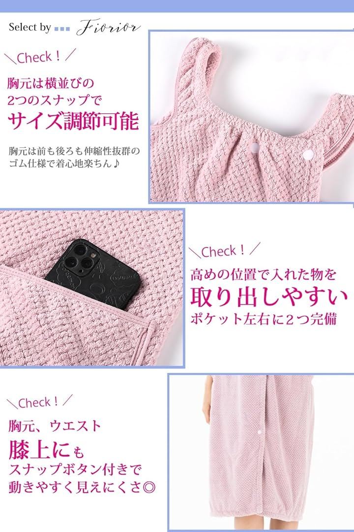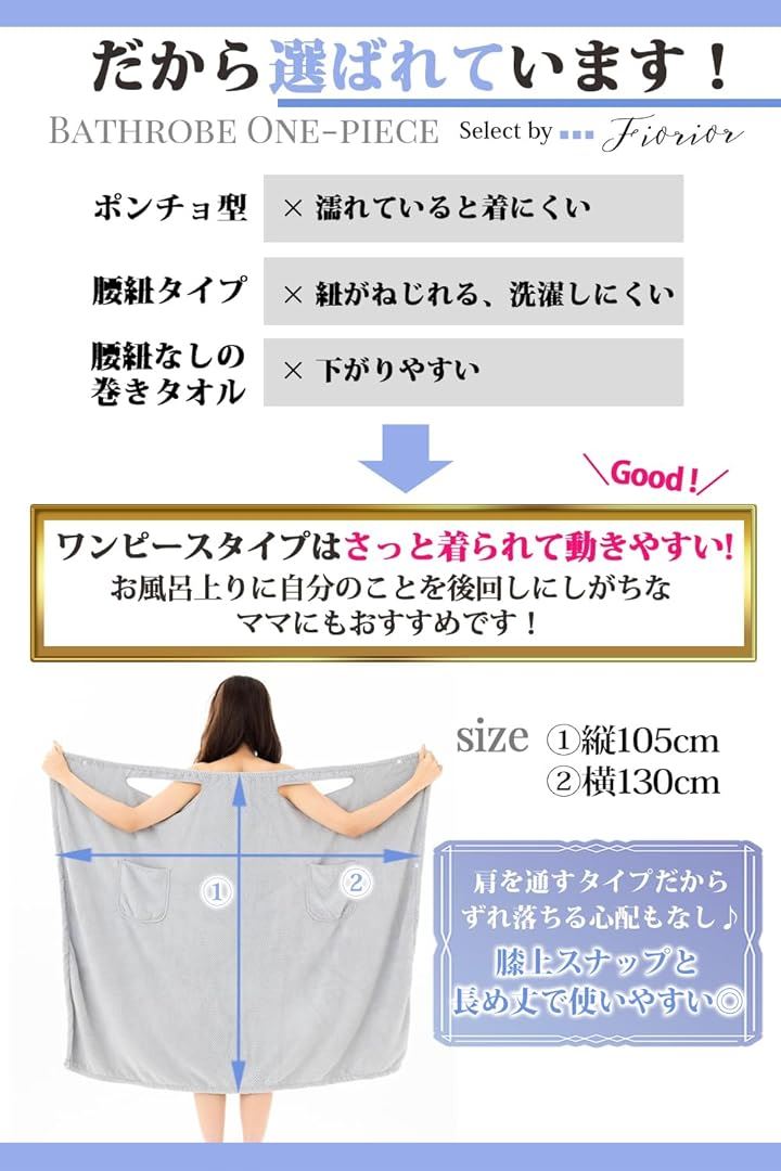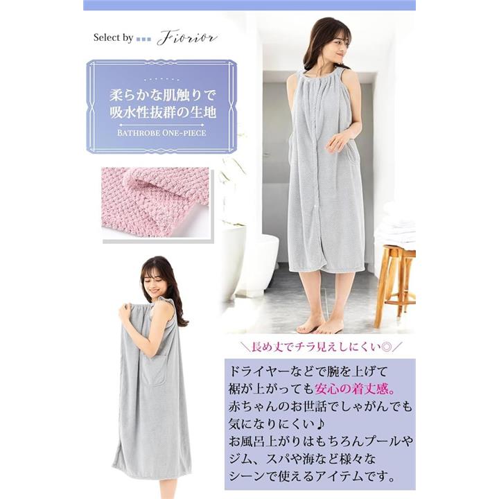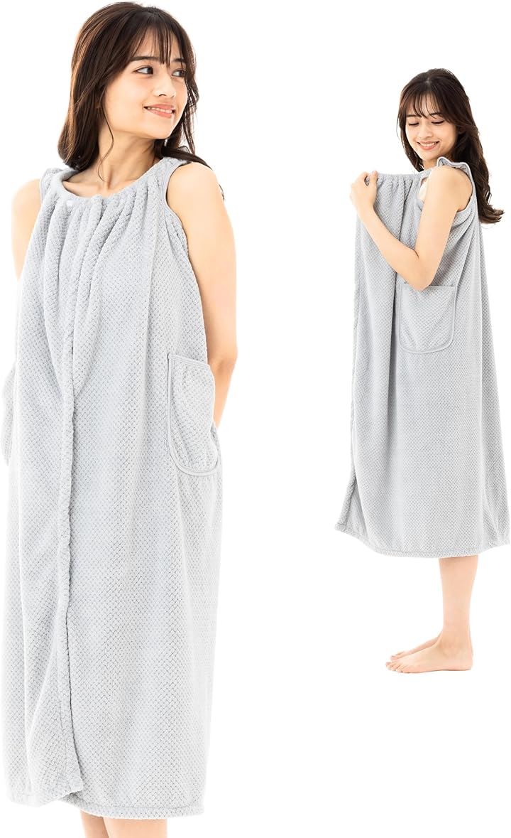 ふわふわの肌触り バスローブ レディース 着るタオル ラップタオル 大人用 マイクロファイバー ワンオペ 速乾 着るバスタオル タオル地 クイックドライ グレー
