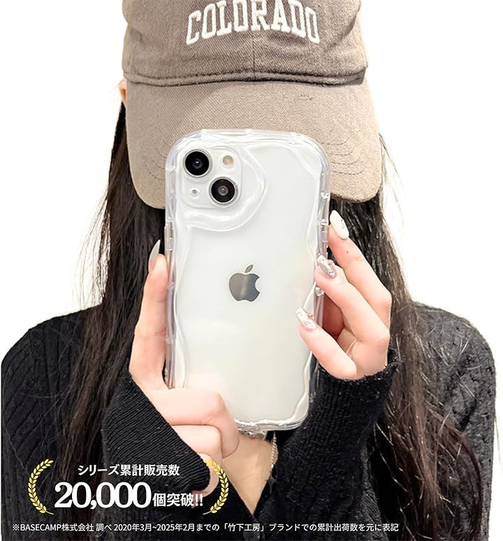 「モコモコ波状フレーム x 大人可愛いデザイン」 立体感のある波状(モコモコ)フレームが特徴的なクリアケースは、ほどよく甘さを感じさせながらもフェミニンすぎず、幅広い世代に受け入れられる大人可愛い仕上がりです。