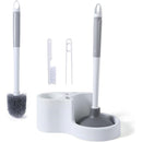 トイレブラシ 4in1 トイレ掃除 つまり取り ラバーカップ 洋式・和式兼用 ホルダー付き 360°タイプ 水はね防止 傷つけない トイレ掃除用品 便器掃除 速乾通気 省スペース 床置き コンパクト 収納ケース ピンセット 隙間ブラシ 多機能