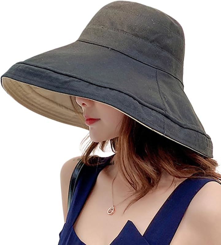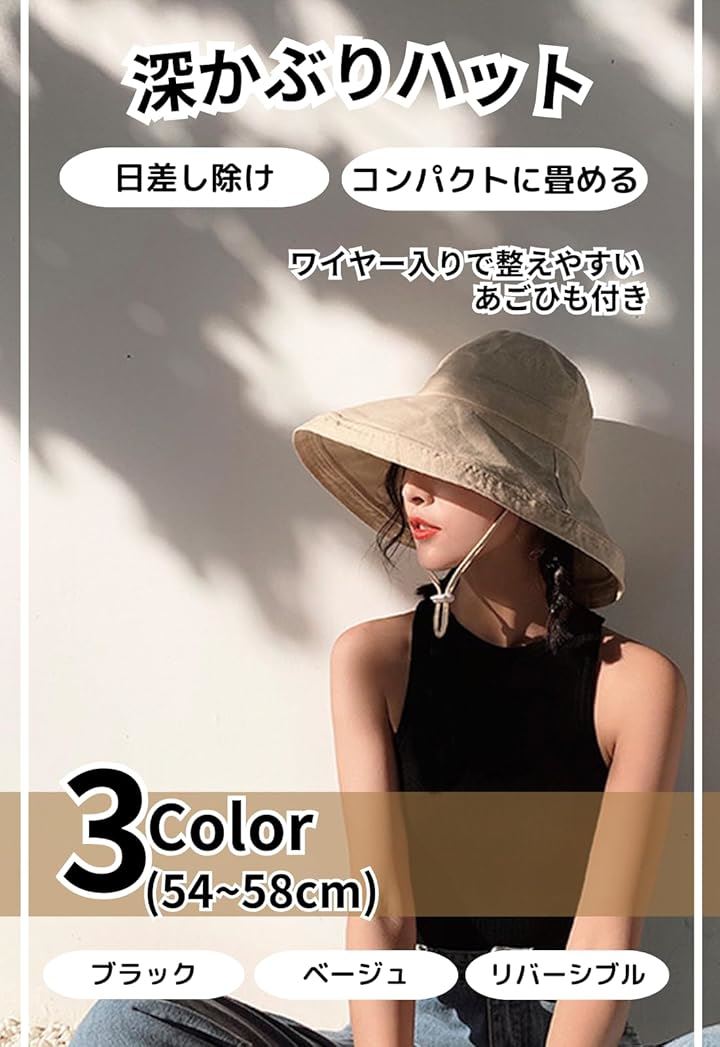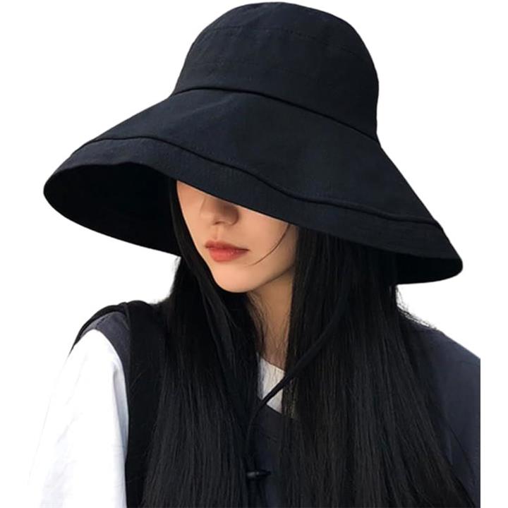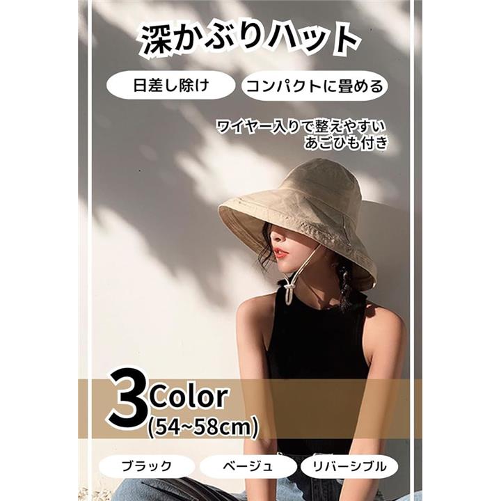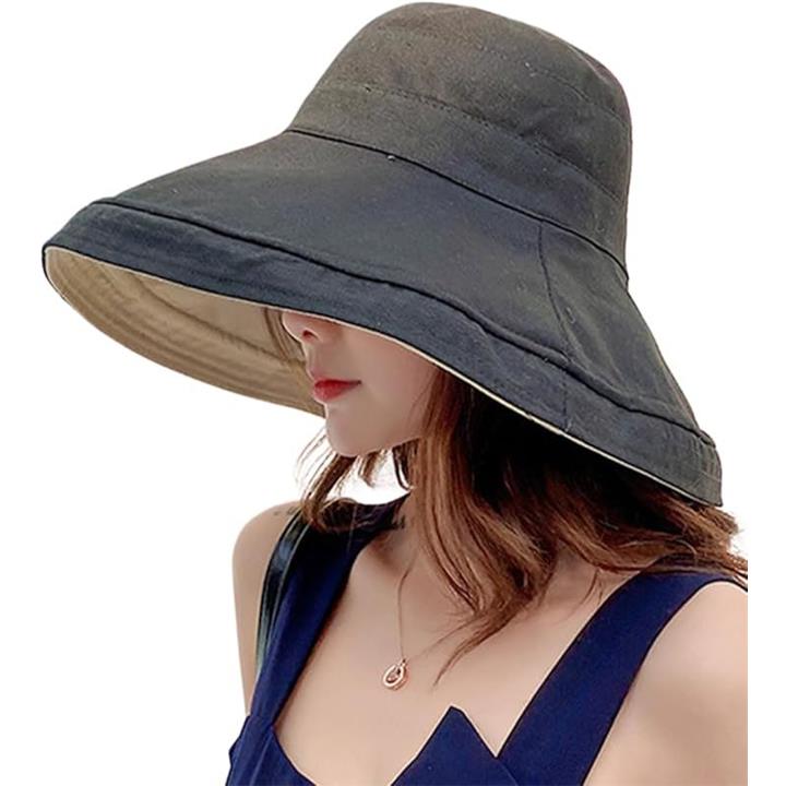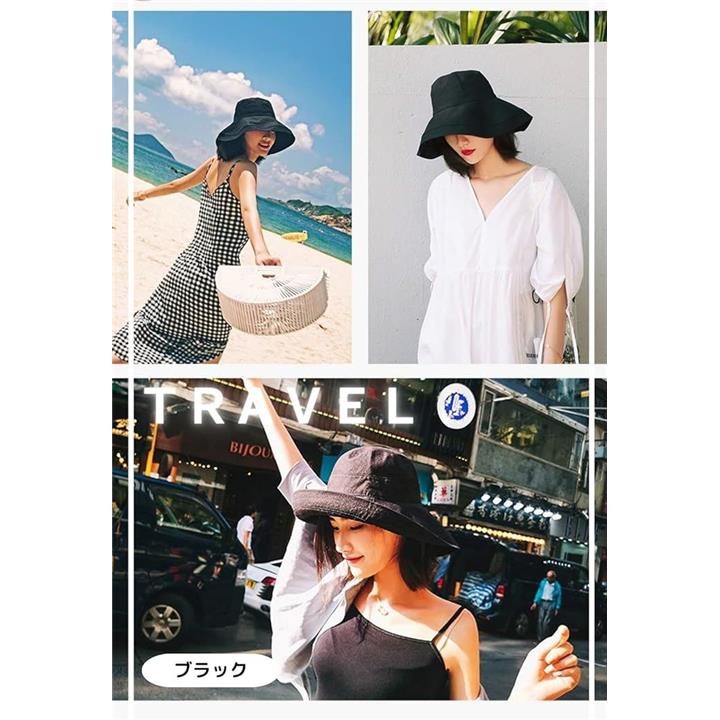 レディース 無地 ベーシック 日よけ 帽子 つば広帽 フリーサイズ れでぃーす つば広め ひよけ つば広い ファッション 両面 黒 折りたたみ コンパクト 夏 春