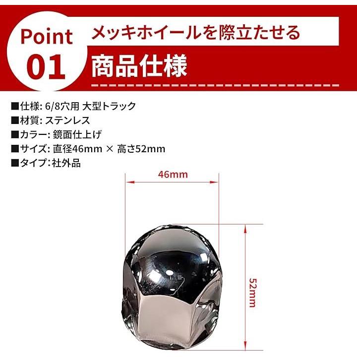 互換品 ナットキャップ ステンレス製 フラットボトム JIS41mm 高さ52mm カバー 鏡面仕上げ 6/8穴用 大型 トラック ダンプ デコトラ カスタム ドレスアップ 汎用品