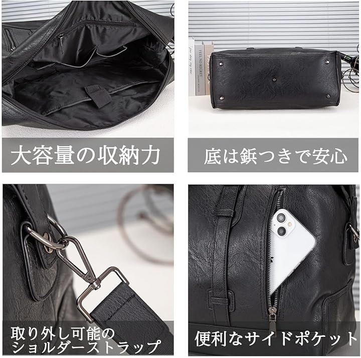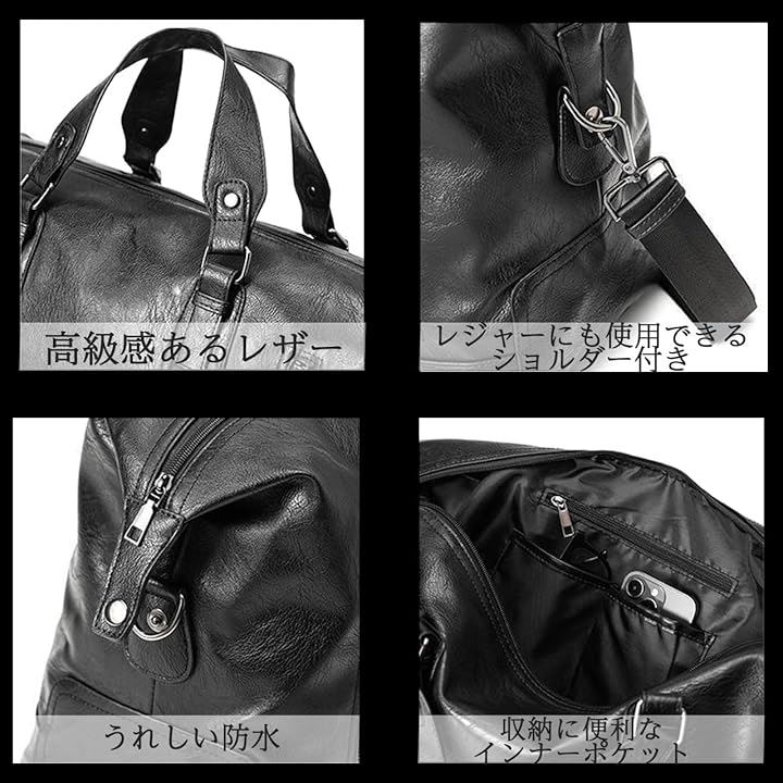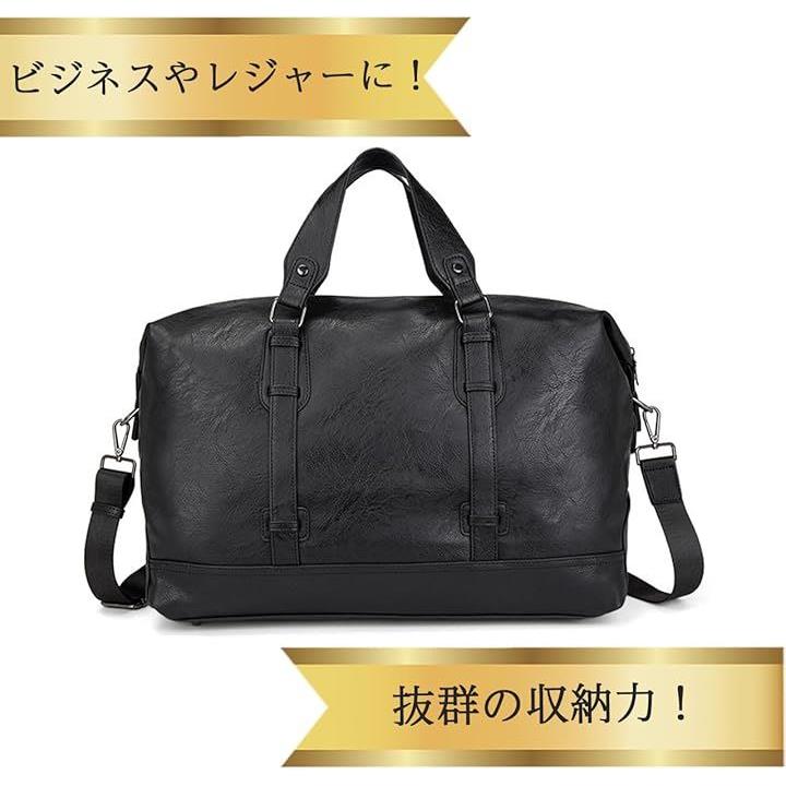 ボストン バッグ 大容量 旅行 PU レザー 防水 メンズ 手提げ ショルダー 付 修学 出張