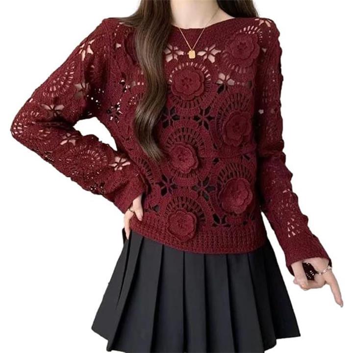 「繊細な透かし編みレースで軽やかに」 愛らしく繊細なサークルレースを全面に施したプルオーバー。