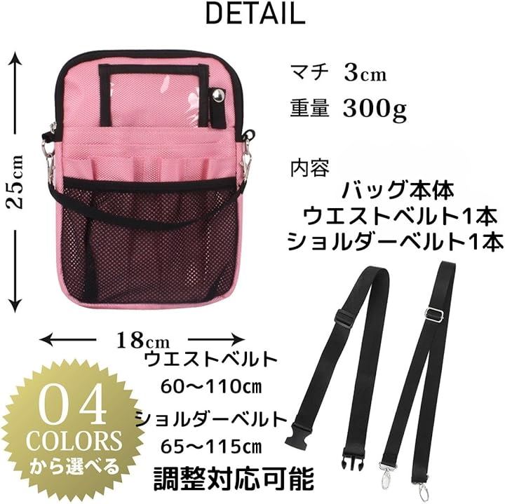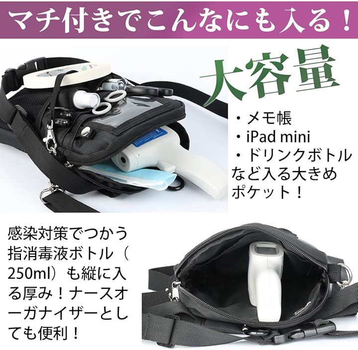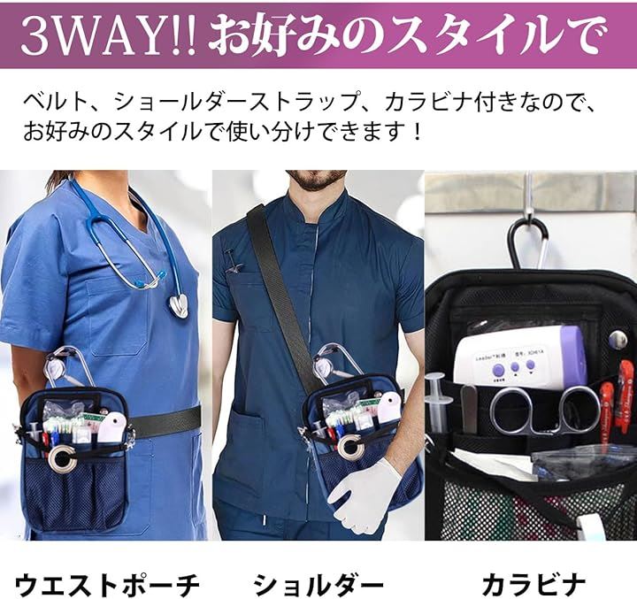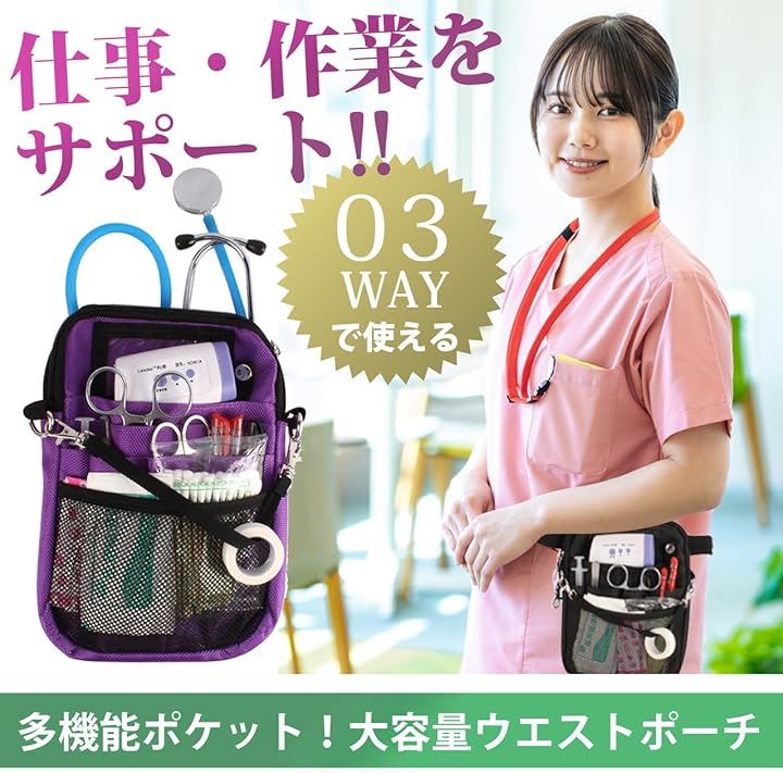 ナース ポーチ ウエスト バッグ 多機能 仕事用 作業用 3WAY ショルダー 大容量 看護 介護
