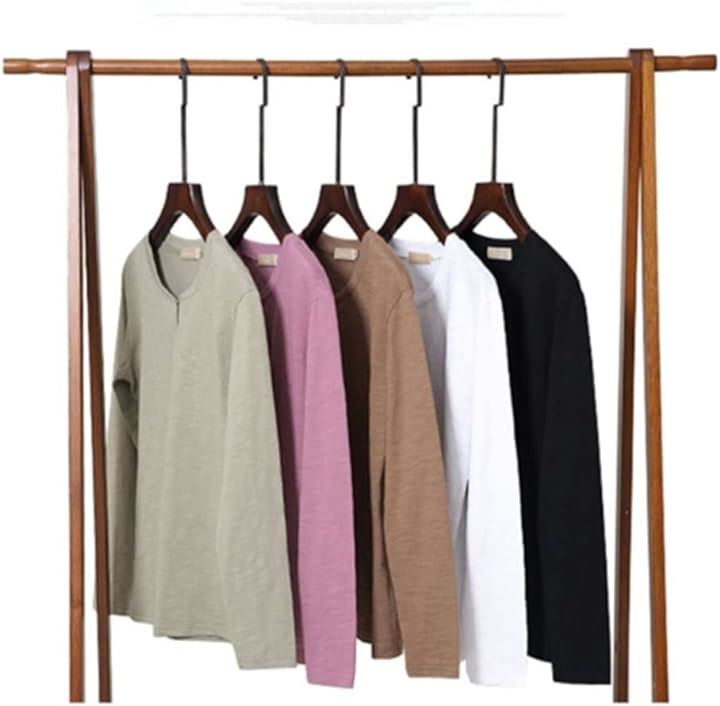 ヘンリーネックのTシャツは、レイヤードスタイルにぴったりです。