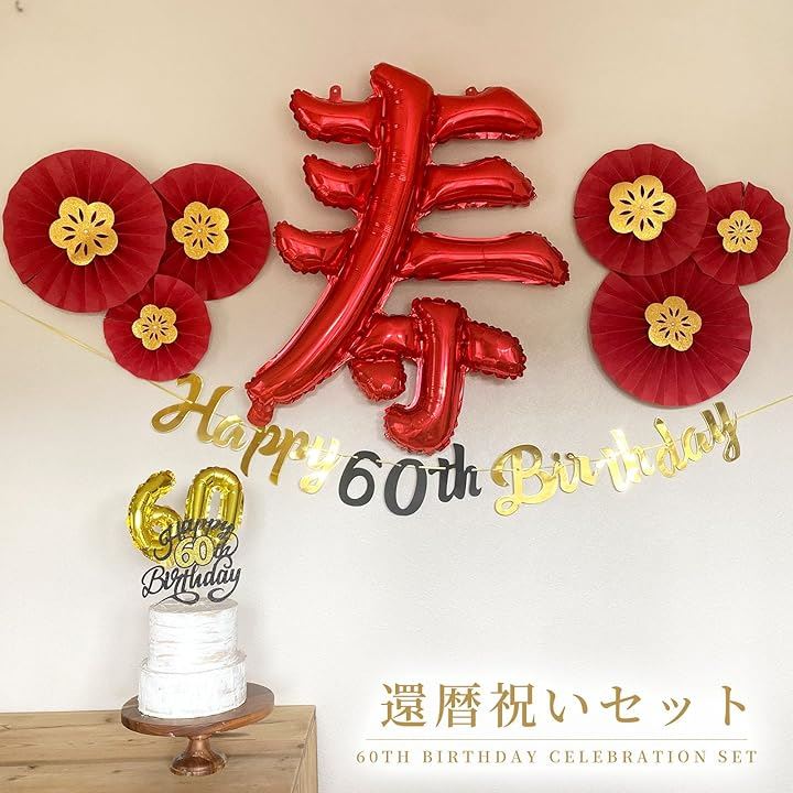 還暦祝い 装飾 飾り デコレーション 男性 女性 60 寿 バルーン 風船 お祝い ケーキ トッパー a-b6008 ケーキトッパーセット