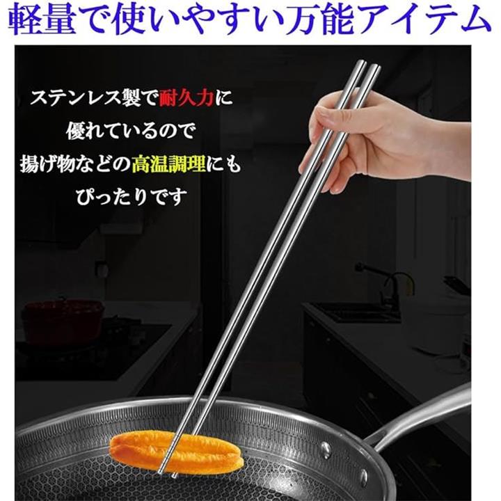 菜箸 ステンレス 長くて扱いやすい箸 調理箸 家庭用 卵焼き 揚げ箸 食洗機対応 滑り止め