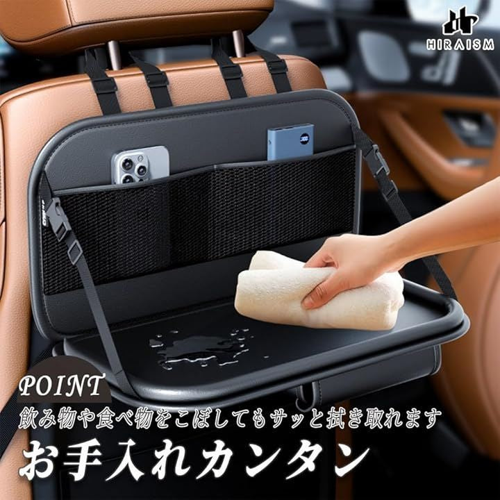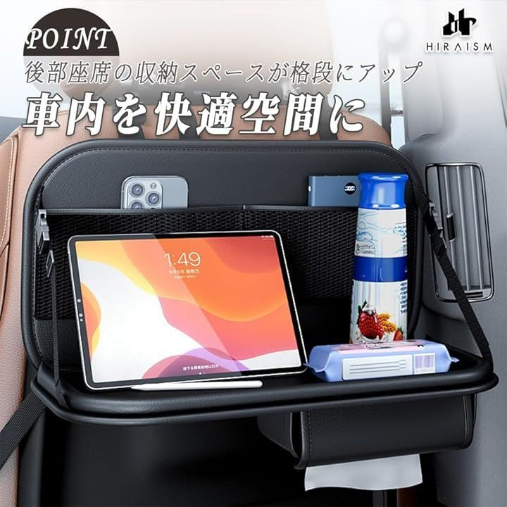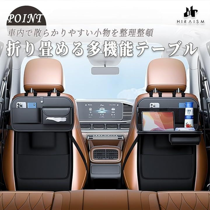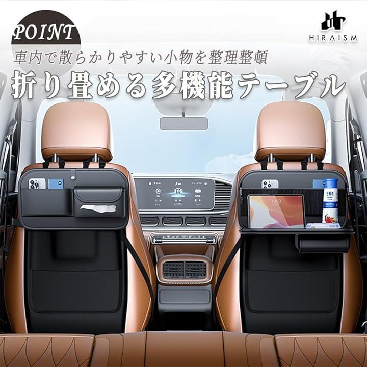 後部座席テーブル 車用シートバック ポケット 折りたたみ式 多機能 大容量収納 ティッシュホルダー付き