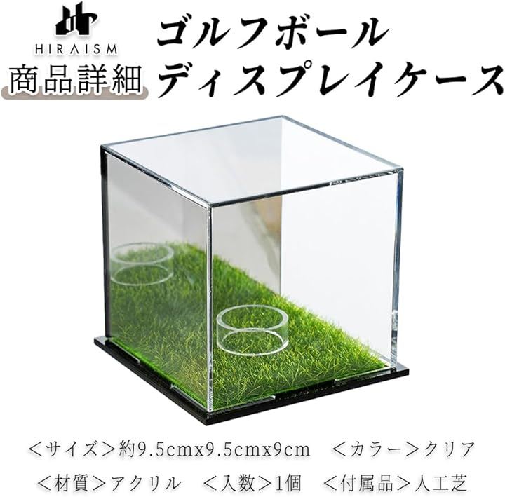 ゴルフボール ディスプレイケース 人工芝付き アクリル 記念球 サインボール展示用 クリア