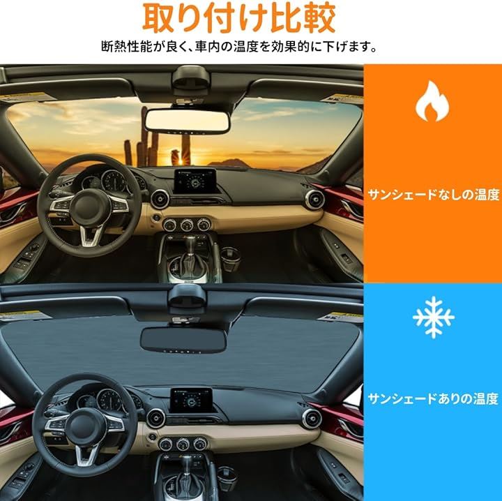 マツダ MX-5 2016年~現行に対応 フロントガラス サンシェード 車用 日よけ 遮光マジカルシェード カーシェード フロントサンシェード 遮光断熱 夏 紫外線 UVカット コンパクト収納 内装パーツ カー用品 車種専用設計