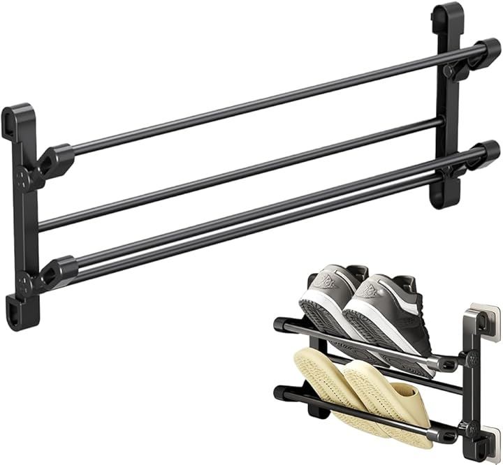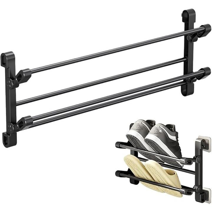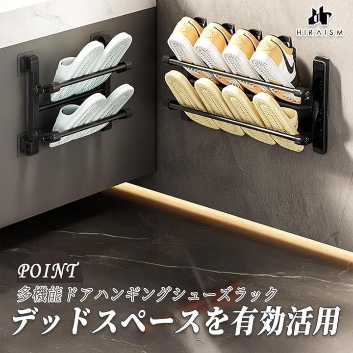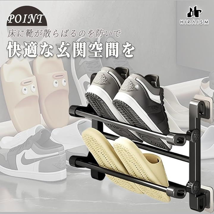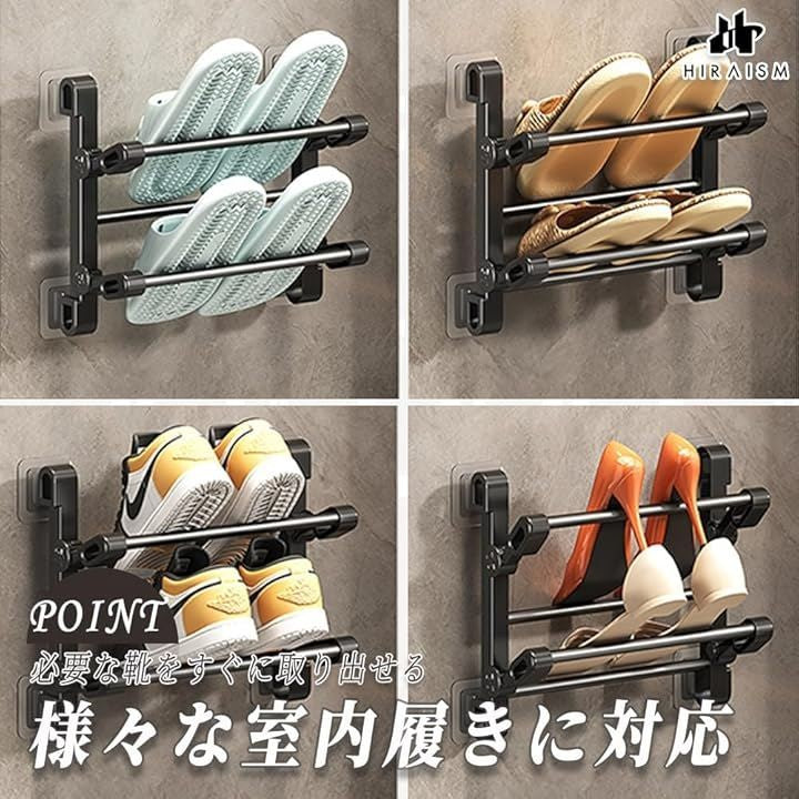 スリッパラック シューズラック 壁掛け 2段 粘着式 穴不要 省スペース 収納