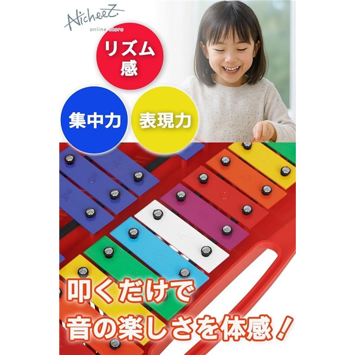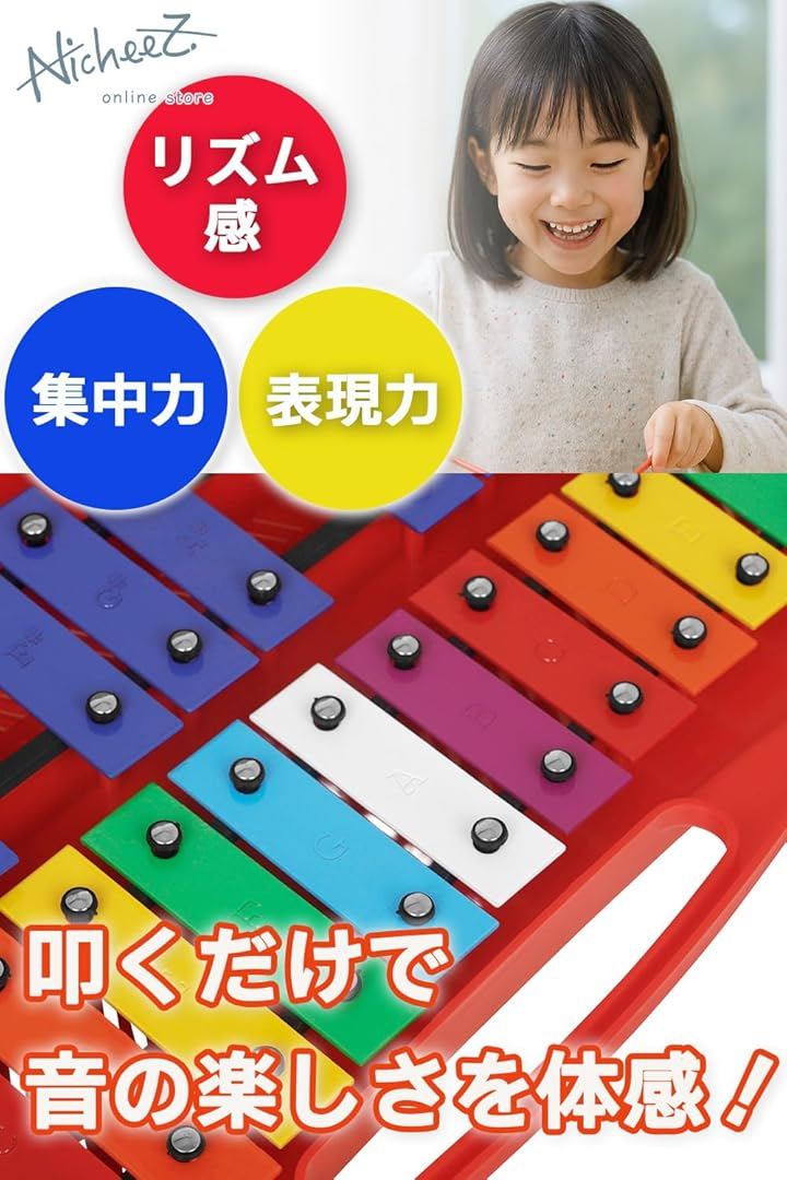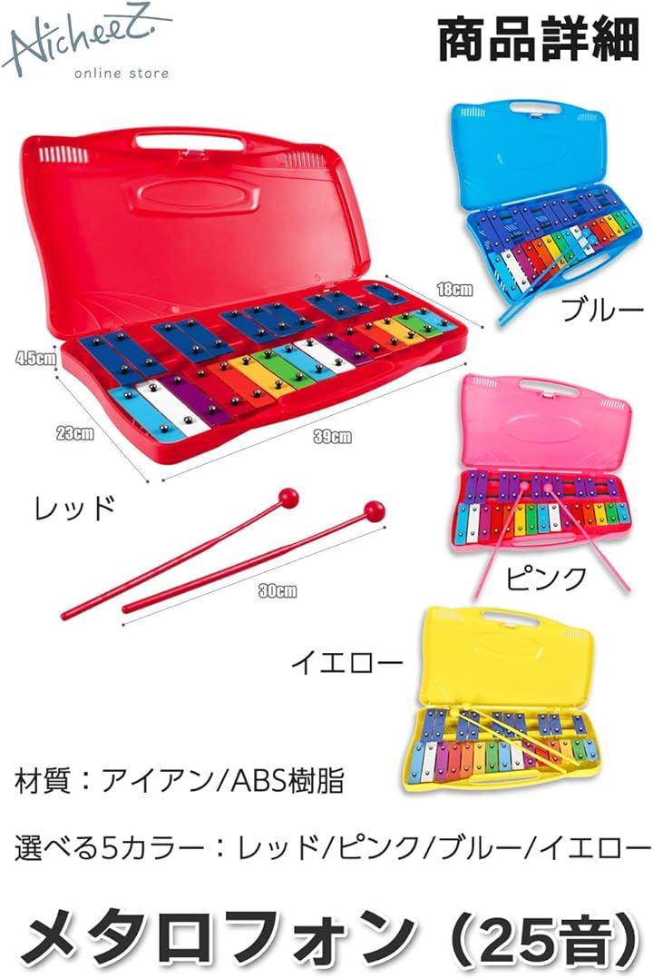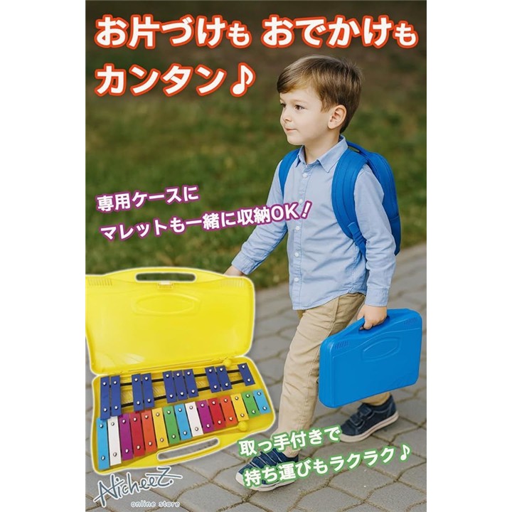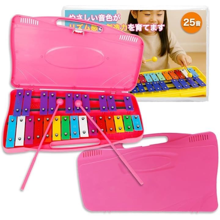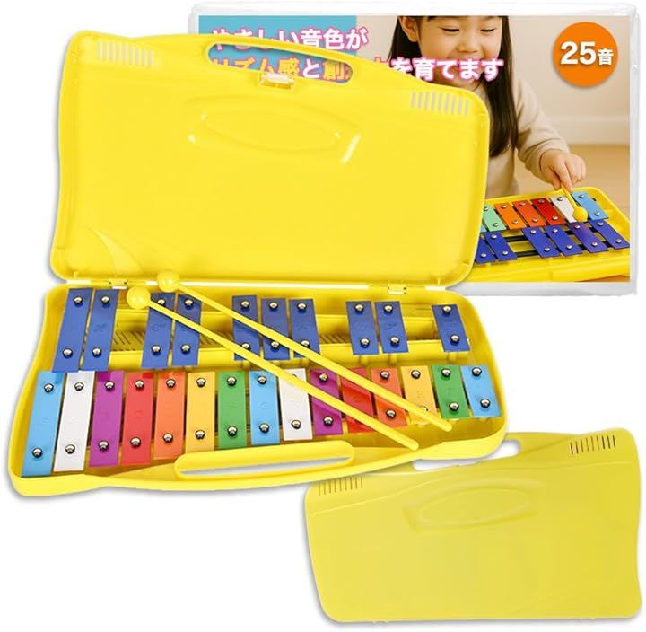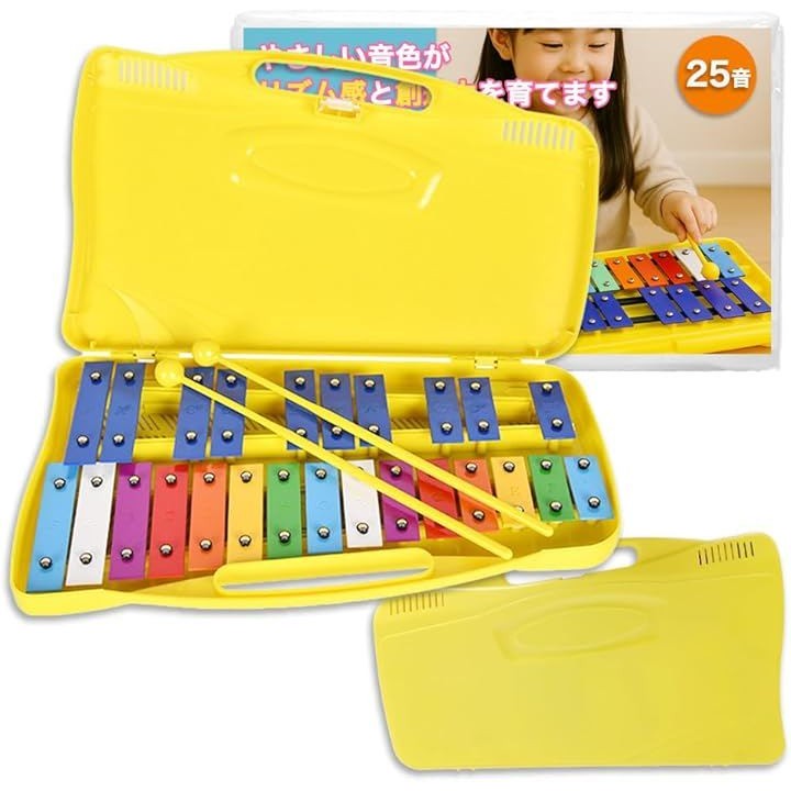 鉄琴 グロッケン メタロフォン 子供用 打楽器 25音 マレット ケース付き カラフル 知育 おもちゃ プレゼント