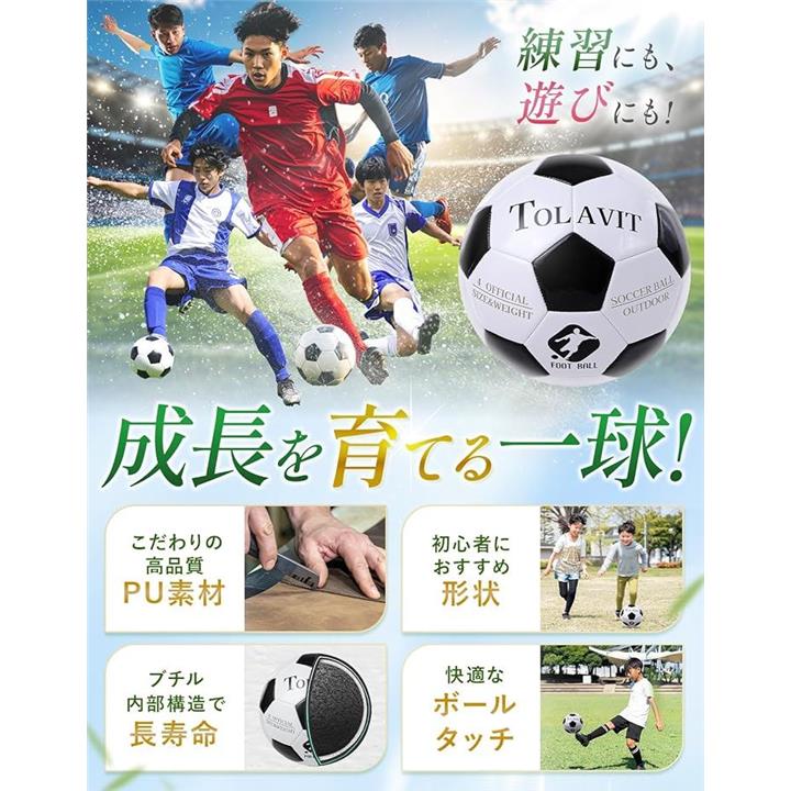 サッカーボール 4号球 練習にも、遊びにも。成長”を育てる一球。 初心者~中級者向け 簡易空気入れ ボールネット付属
