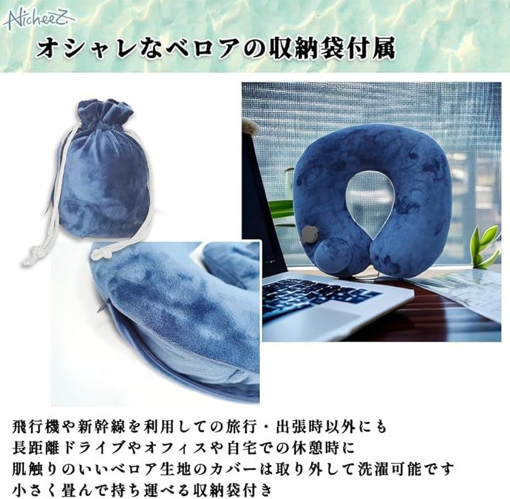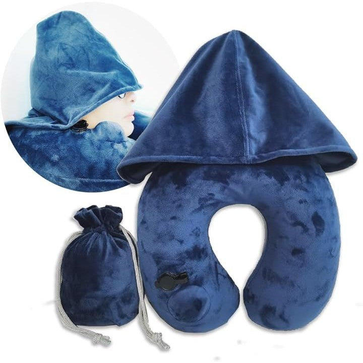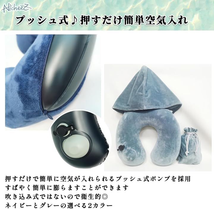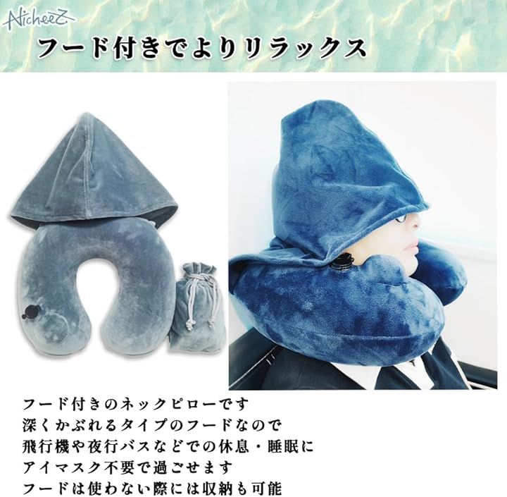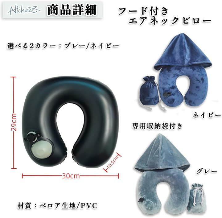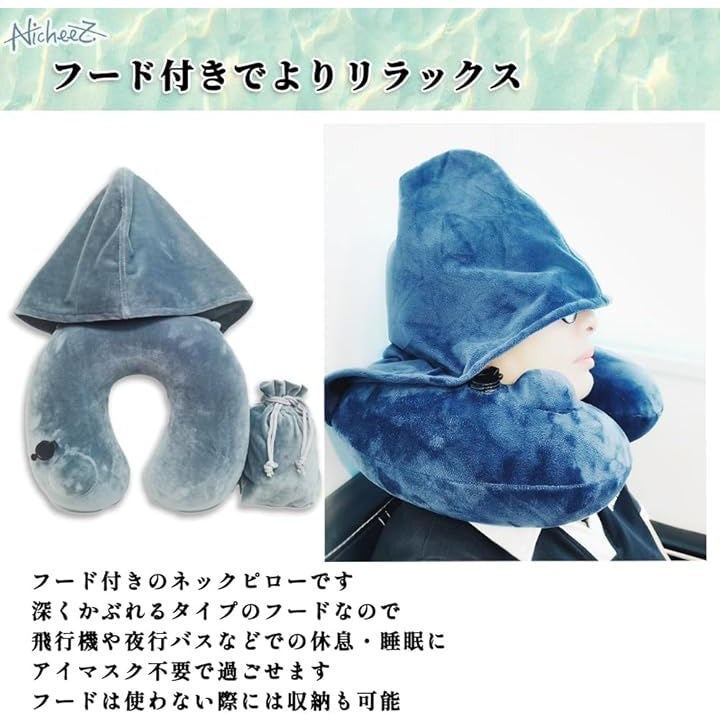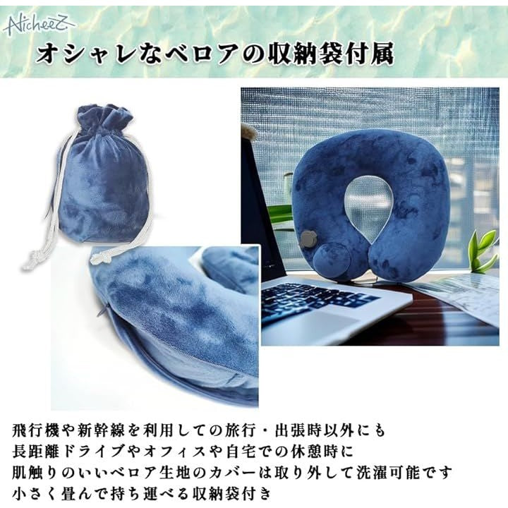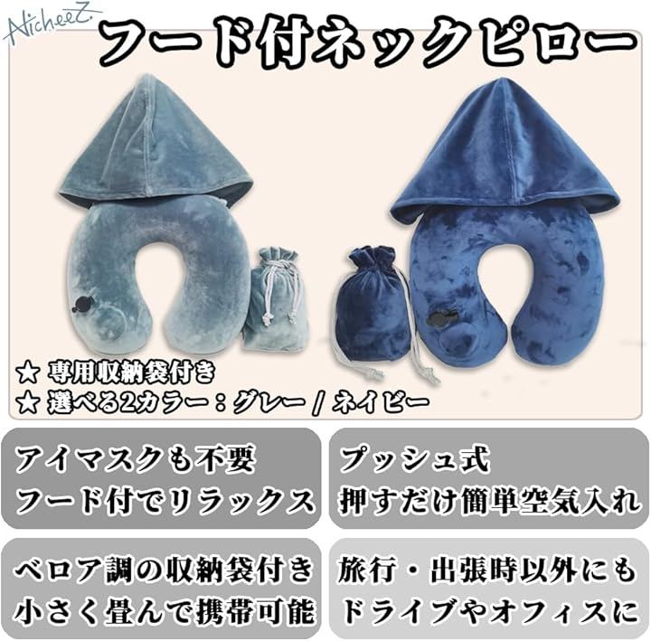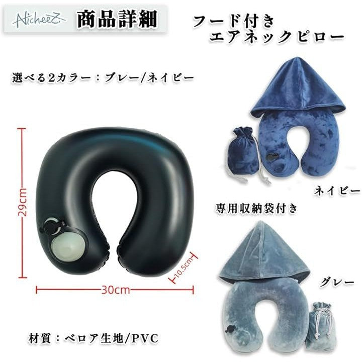 ネックピロー フード ベロア 折りたたみ 空気 首 枕