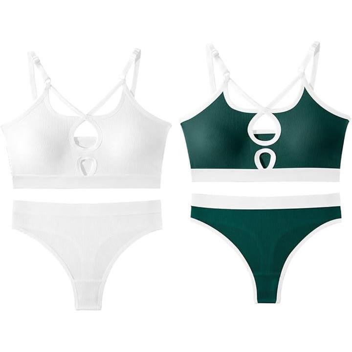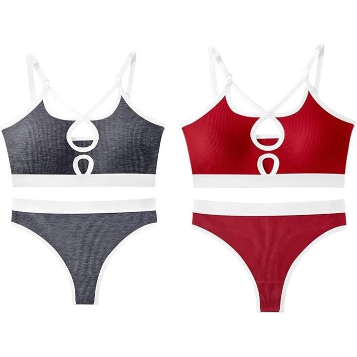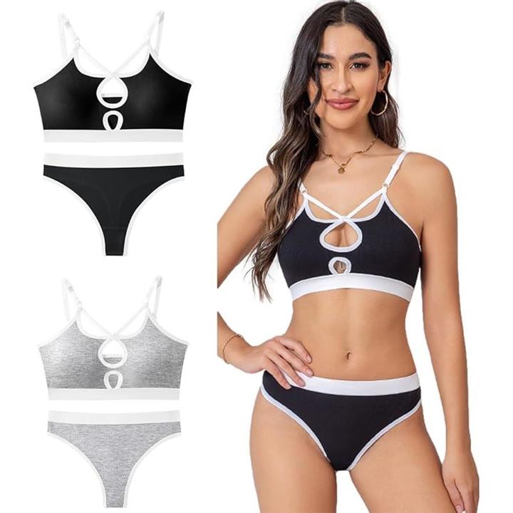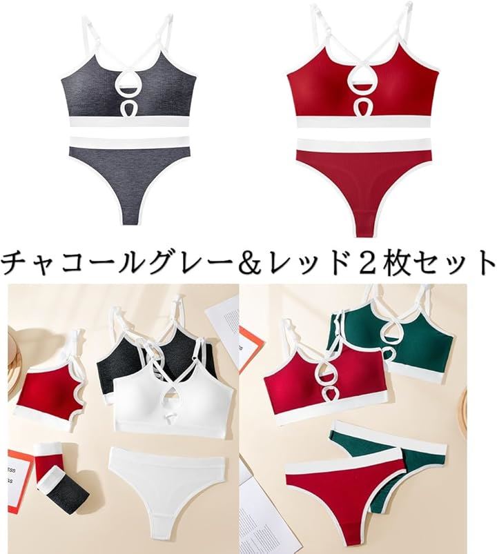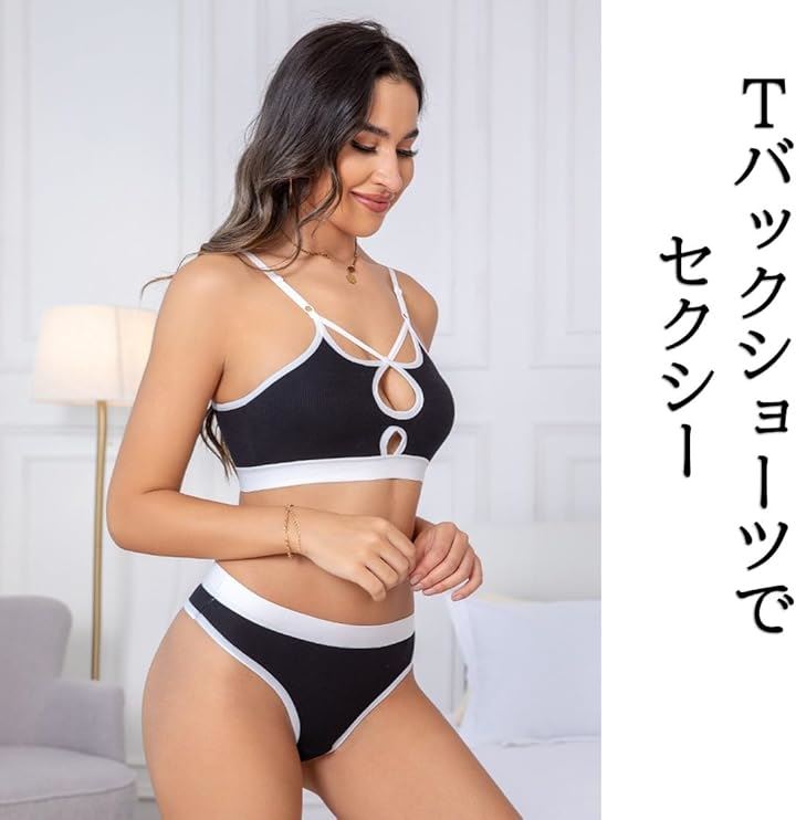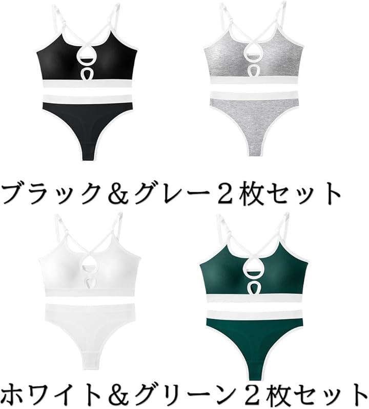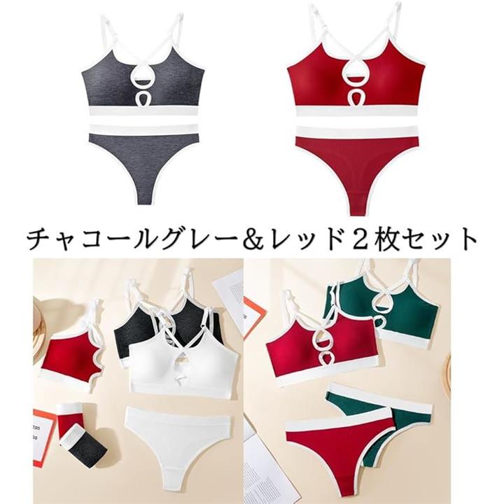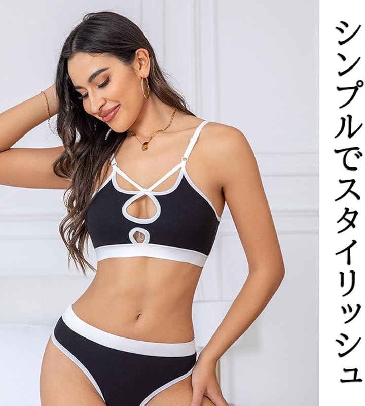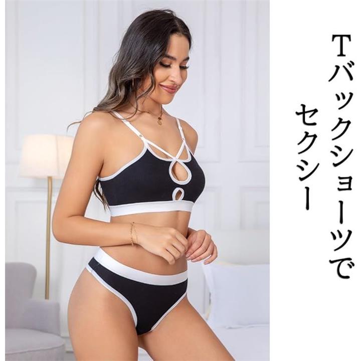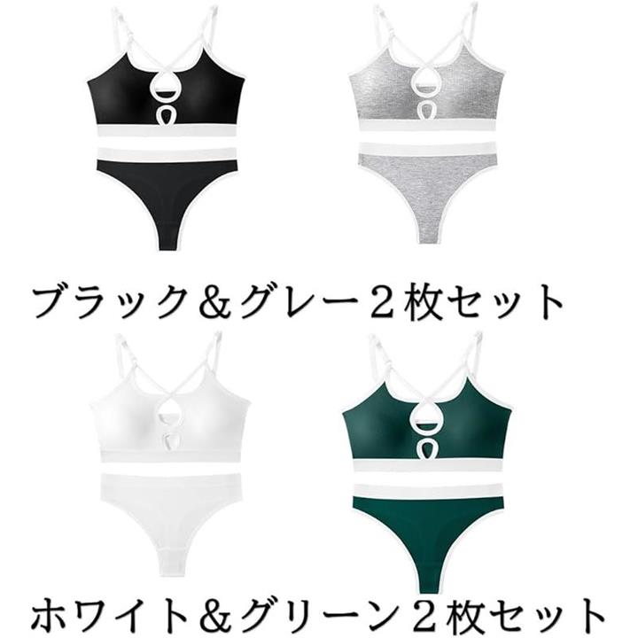 Tバック セクシー 下着 レディース 上下 セット ノンワイヤー キーホール フリーサイズ 2枚