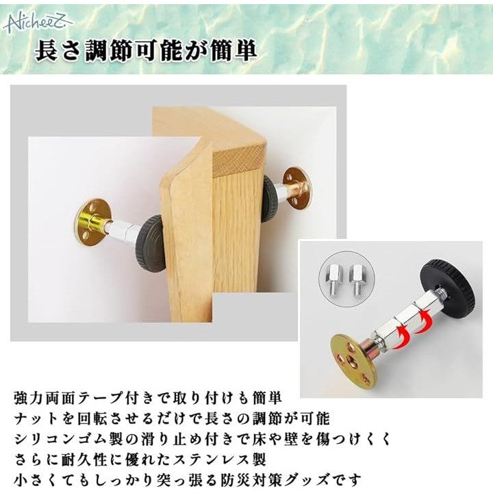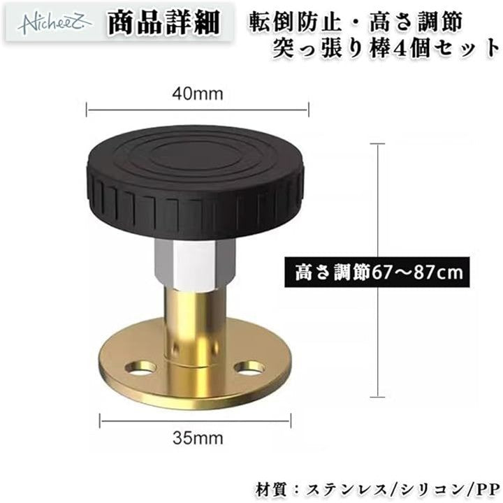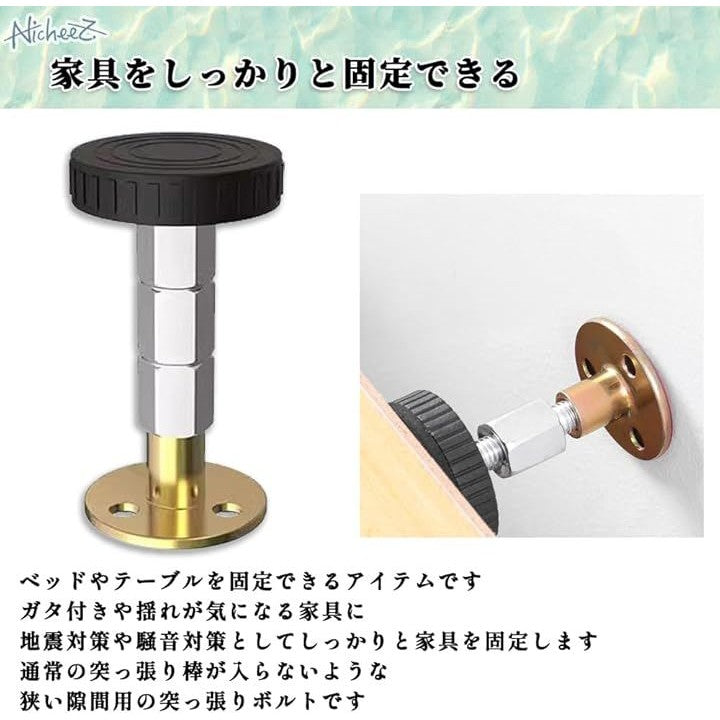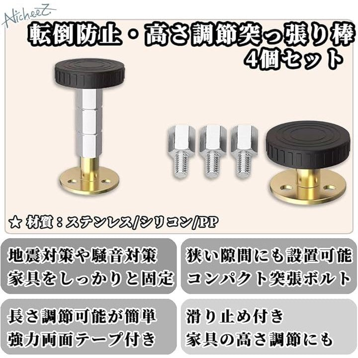 家具転倒防止 突っ張り 棒 ボルト 狭い隙間用 固定 高さ調節 短め ステンレス 地震対策 4個セット