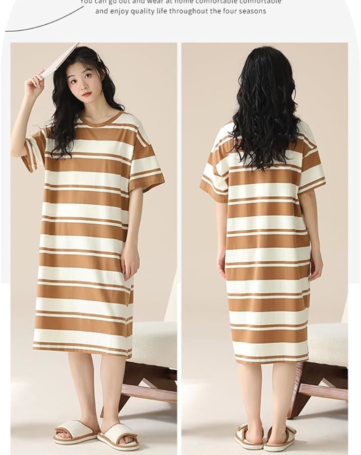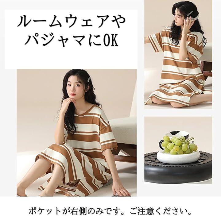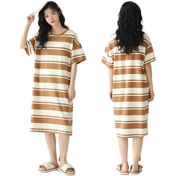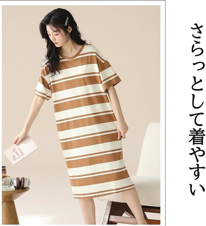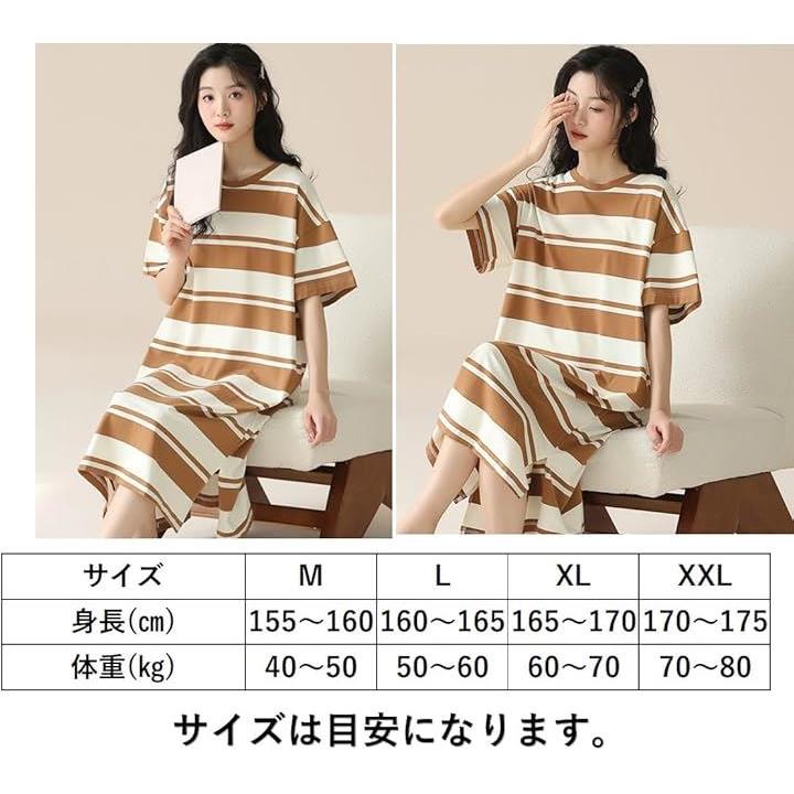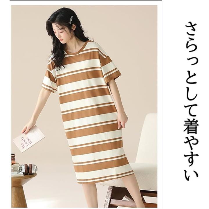 ワンピース 半袖 部屋着 ルームウェア パジャマ 夏 ボーダー