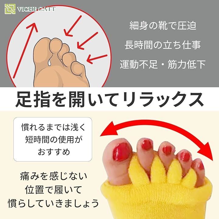 [VICHE CATT] 足指 広げる 5本指ソックス レディース ルームソックス 寝る時用靴下 スリーピングソックス |
