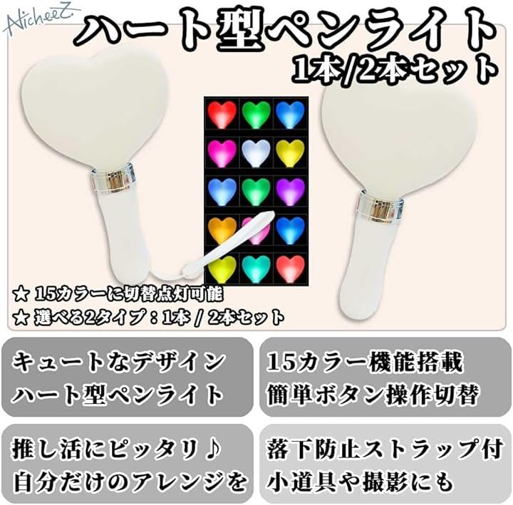ペンライト ハート スティック ライブ 結婚式 カラーチェンジ 15色