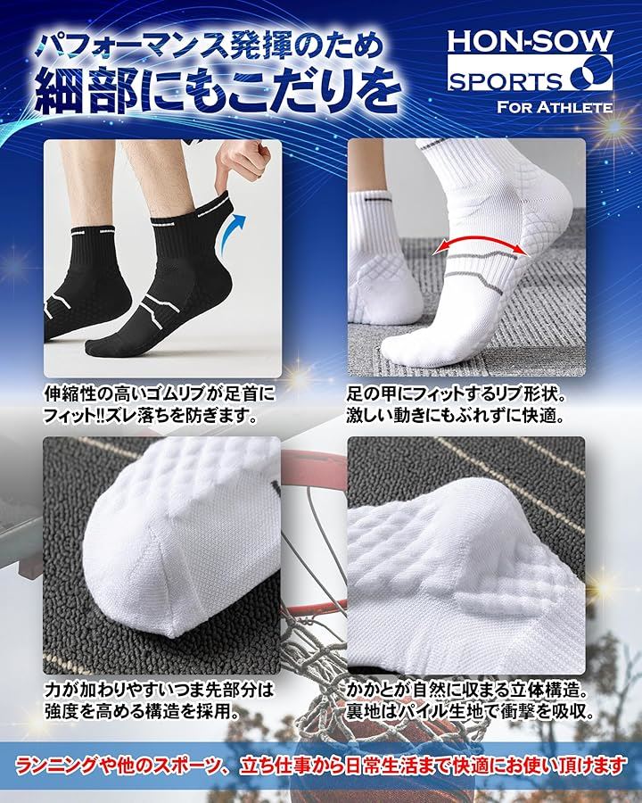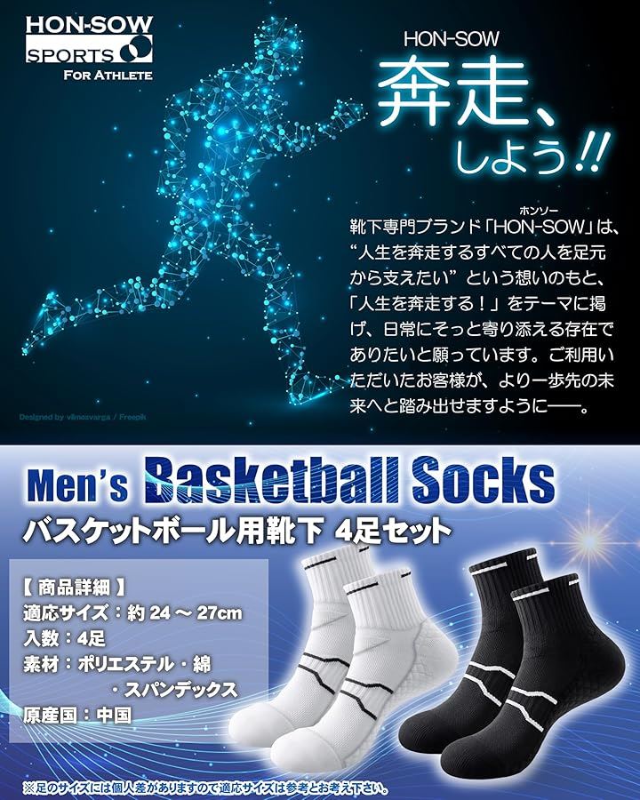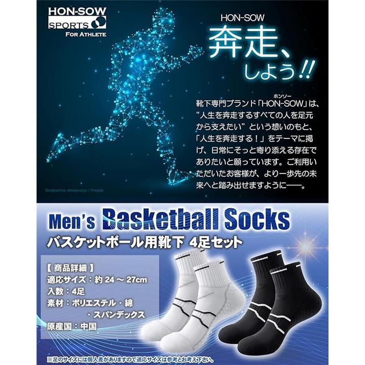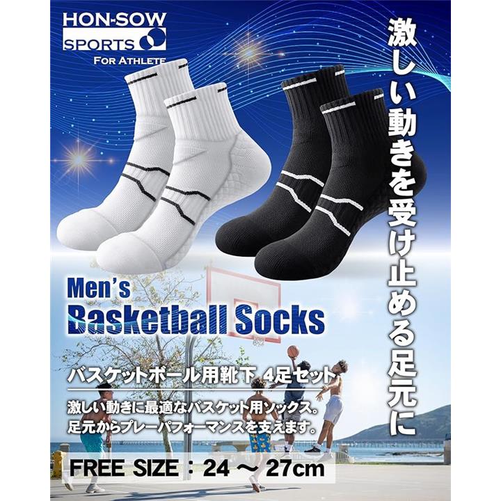 互換品 バスケ 靴下 ソックス 4足セット アンクルソックス