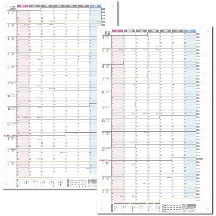1年連結カレンダー ポスター 2年分のカレンダー 2025年 2026年 4月始まり 日曜始まり 大きい 壁掛け 令和7年 M2-2526-04S