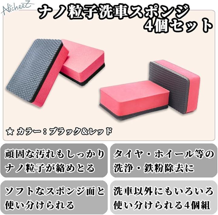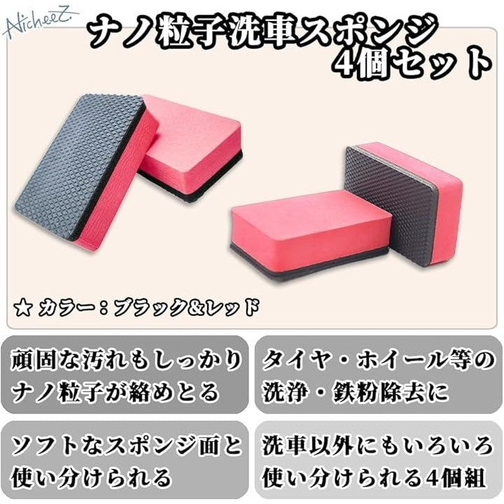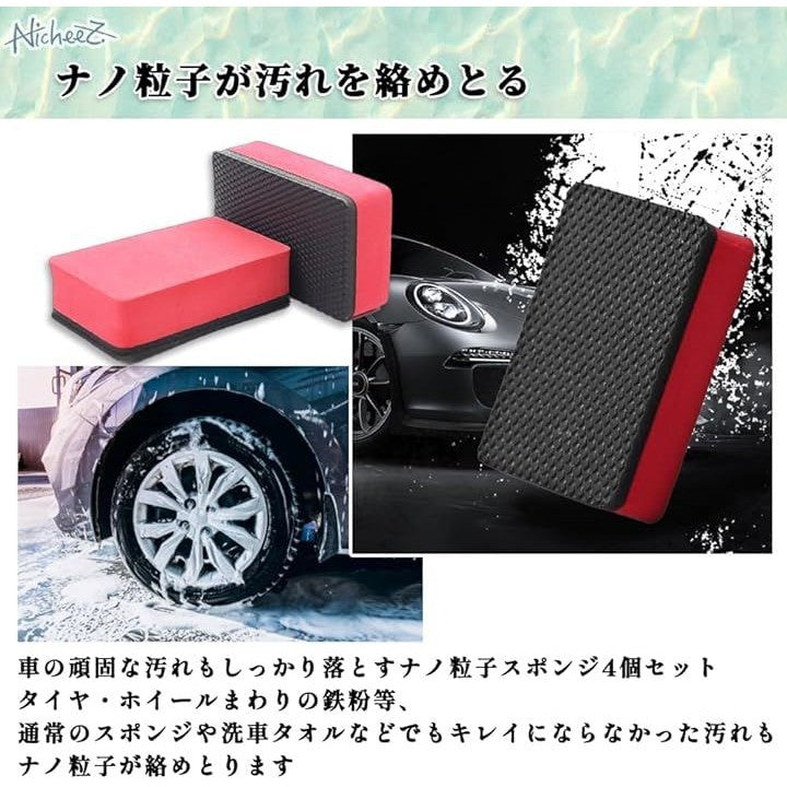 洗車 スポンジ 鉄粉 粒子 取り 除去 ナノ ガラス 浴槽 キッチン 4個セット