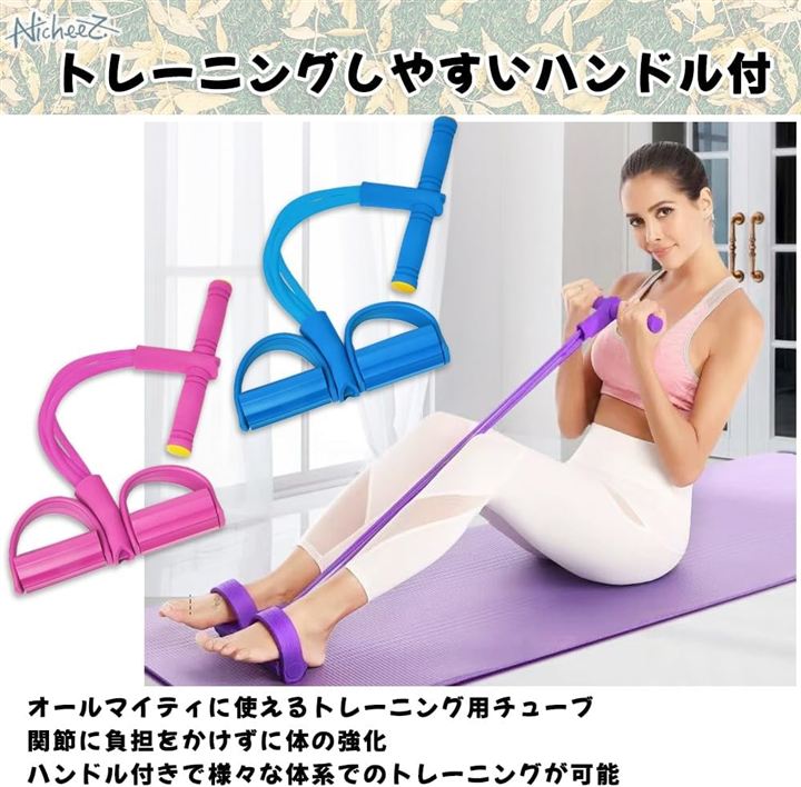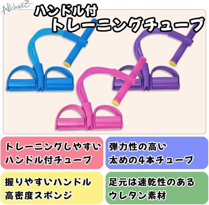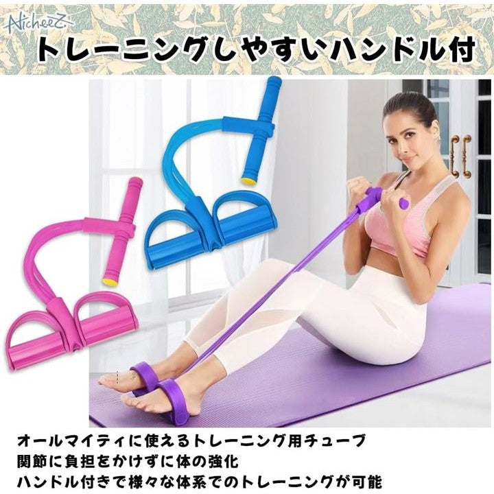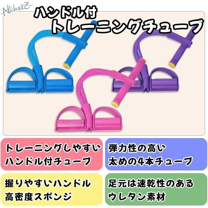 トレーニングチューブ ストレッチバンド ゴムチューブ 筋トレ 腹筋 背筋 バー エクササイズ シットアップ