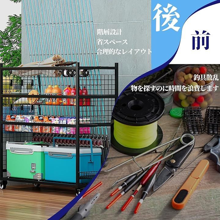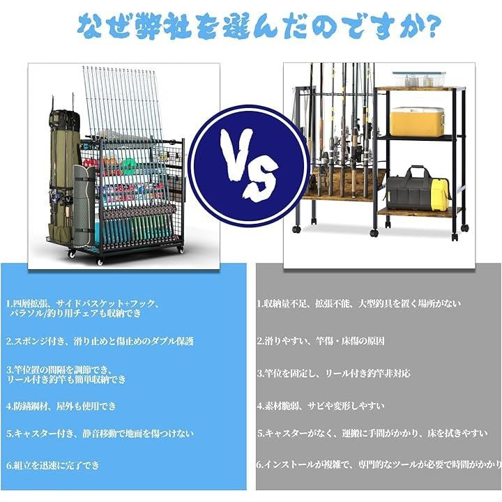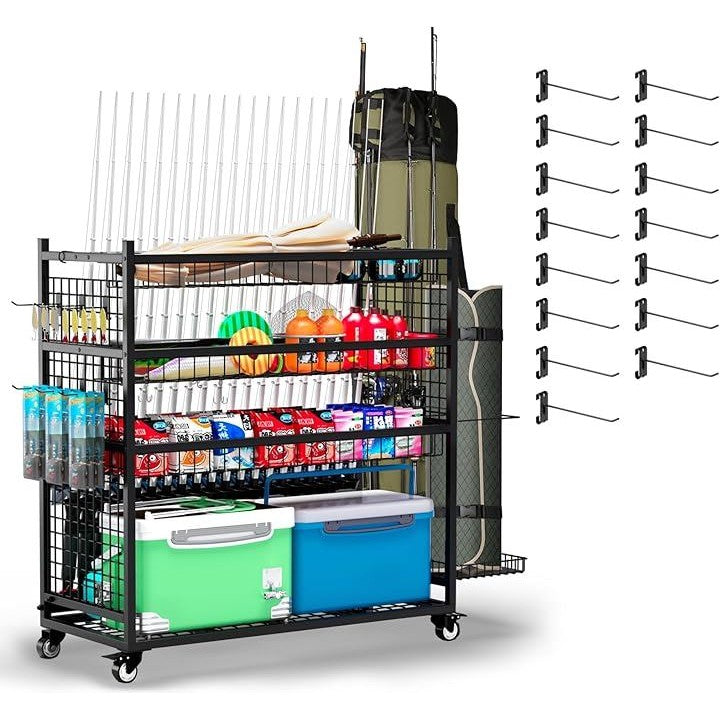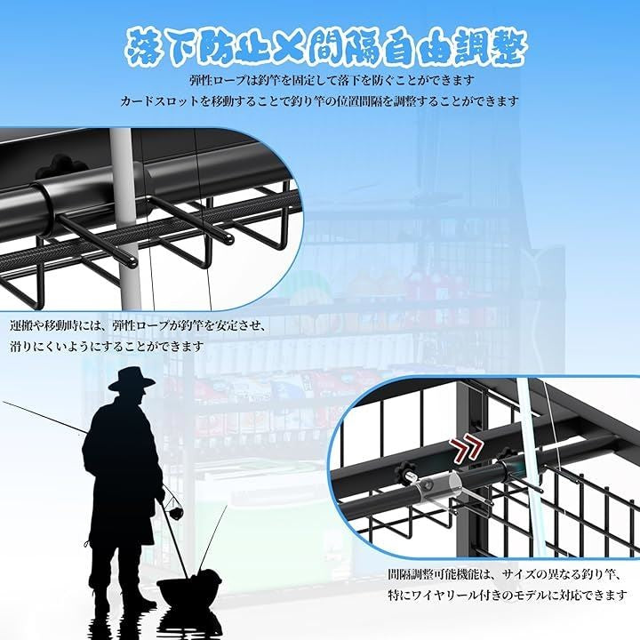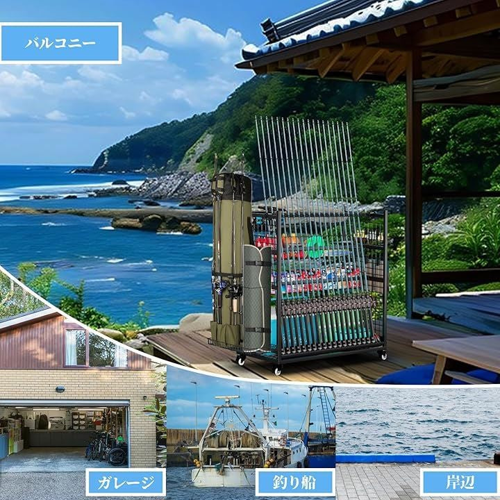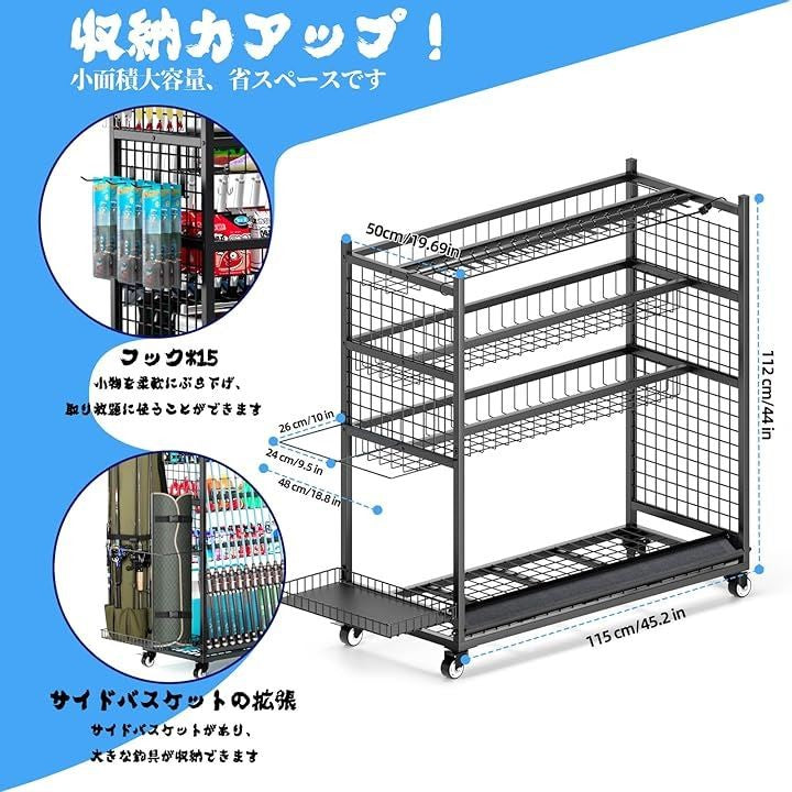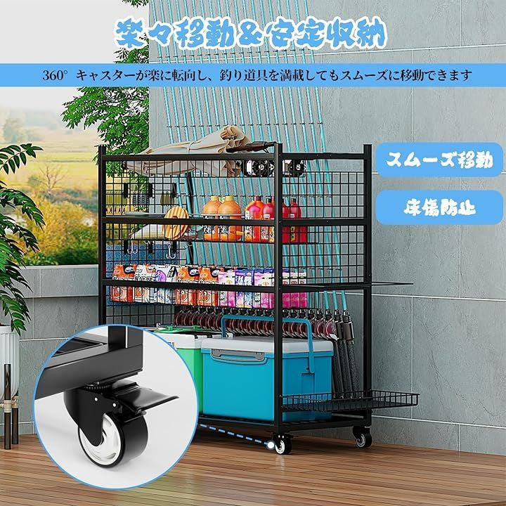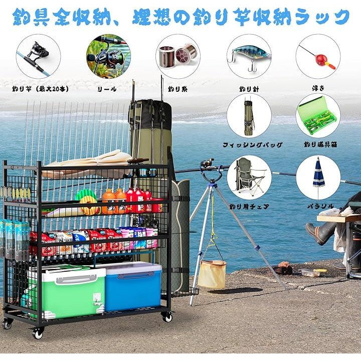ロッドスタンド 釣り竿立て ロッドラック 釣り竿スタンド 釣具 釣り竿収納ラック ロッド立て 最大20本釣り竿収納可能 大容量 人気 省スペース 頑丈 キャスター/フック付き プレゼント ガレージ/岸辺/釣り船用